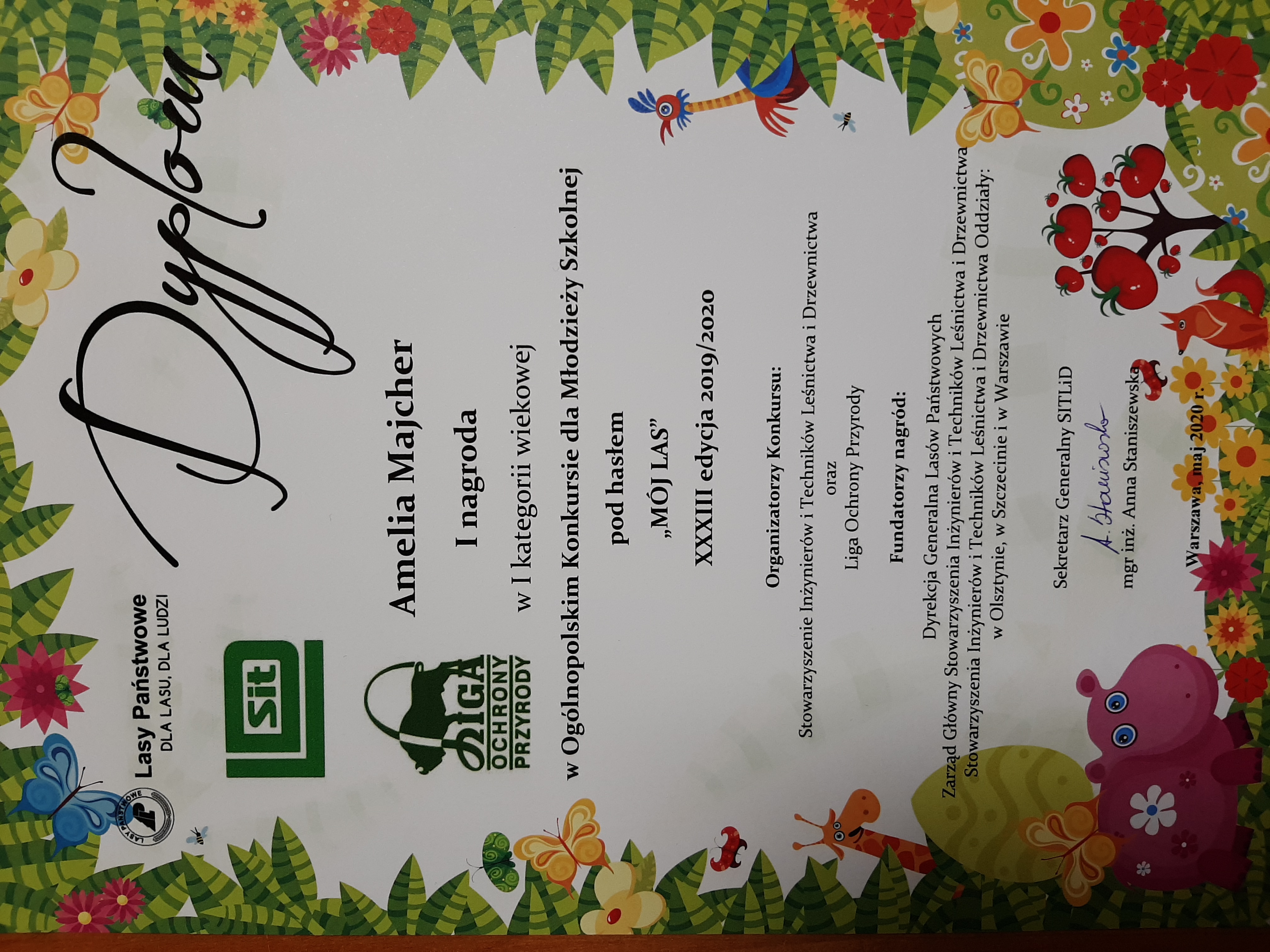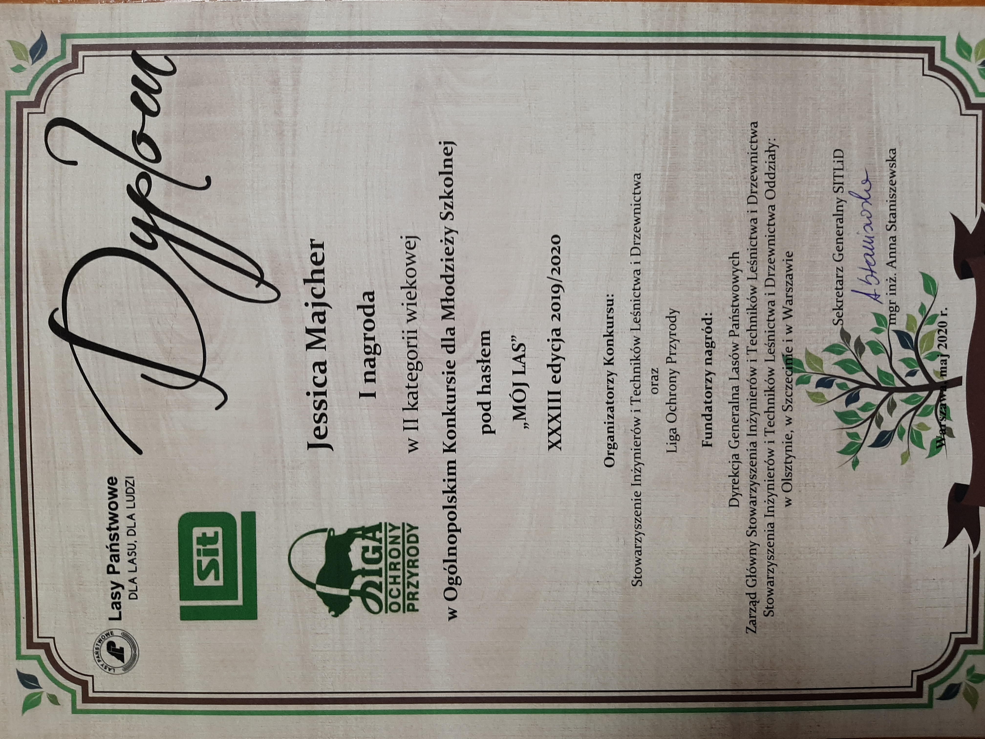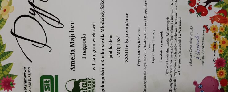 Mam ogromną przyjemność poinformować, że decyzją Głównego Sądu Konkursowego dwie uczennice Szkoły Podstawowej im. Mikołaja Kopernika w Strzeszynie zostały laureatkami XXXIII edycji 2019/2020 Ogólnopolskiego Konkursu dla Młodzieży Szkolnej pod hasłem ,,MÓJ LAS”.