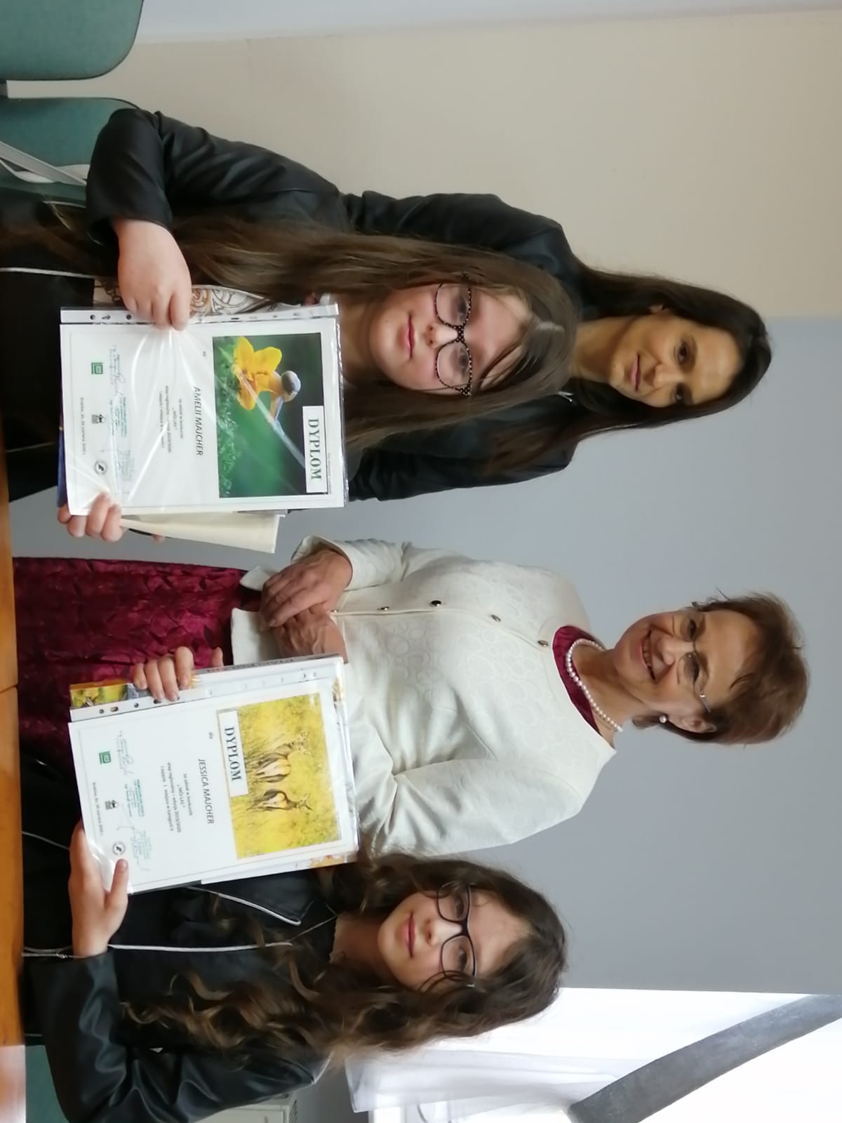 Amelia Majcher i Jessica Majcher zajęły I miejsce w swoich kategoriach wiekowych. Każda z dziewczynek zaprezentowała swoją pracę, w której wykazała się doskonałą znajomością tematu oraz kreatywnością i pomysłowością.