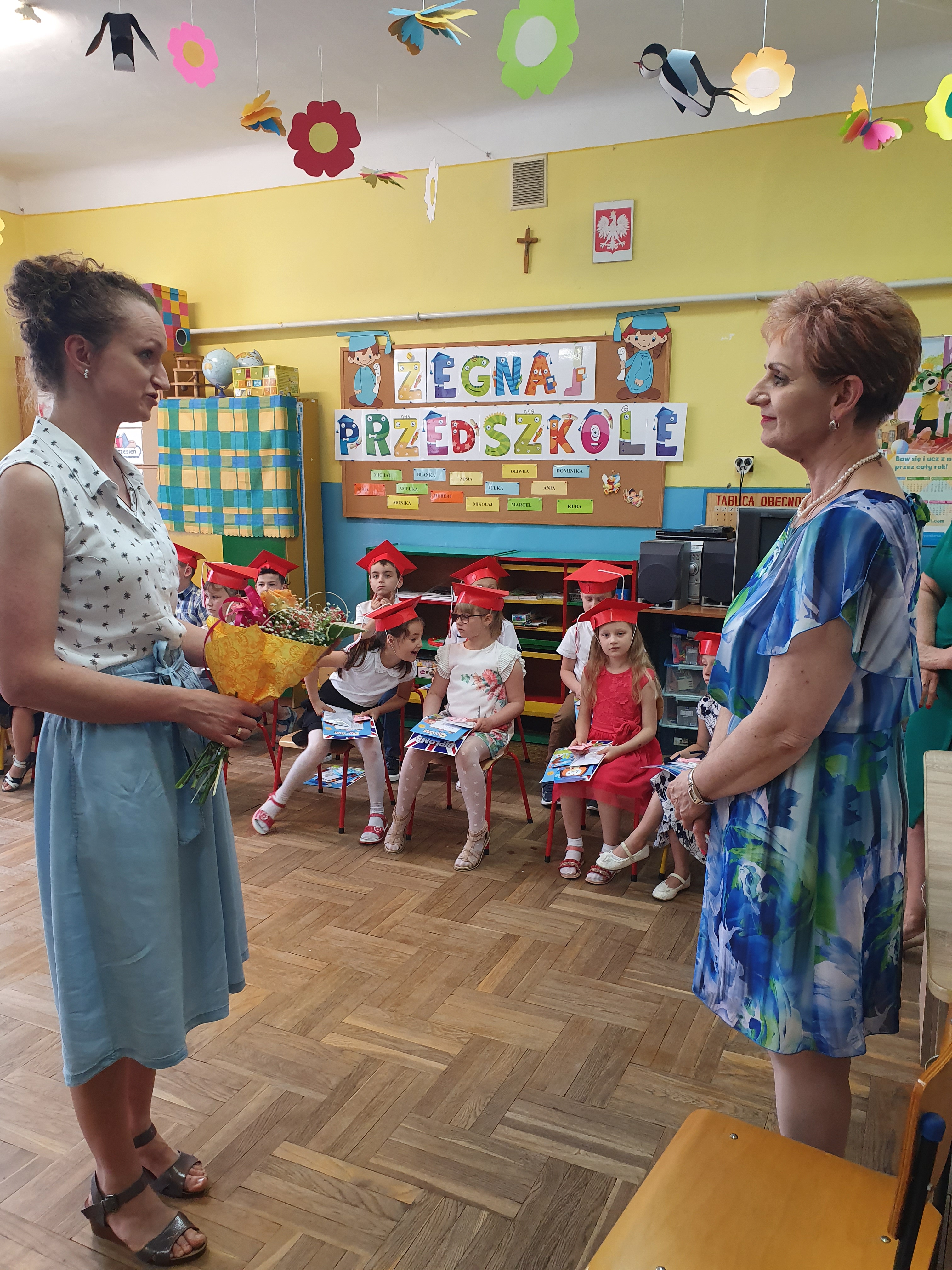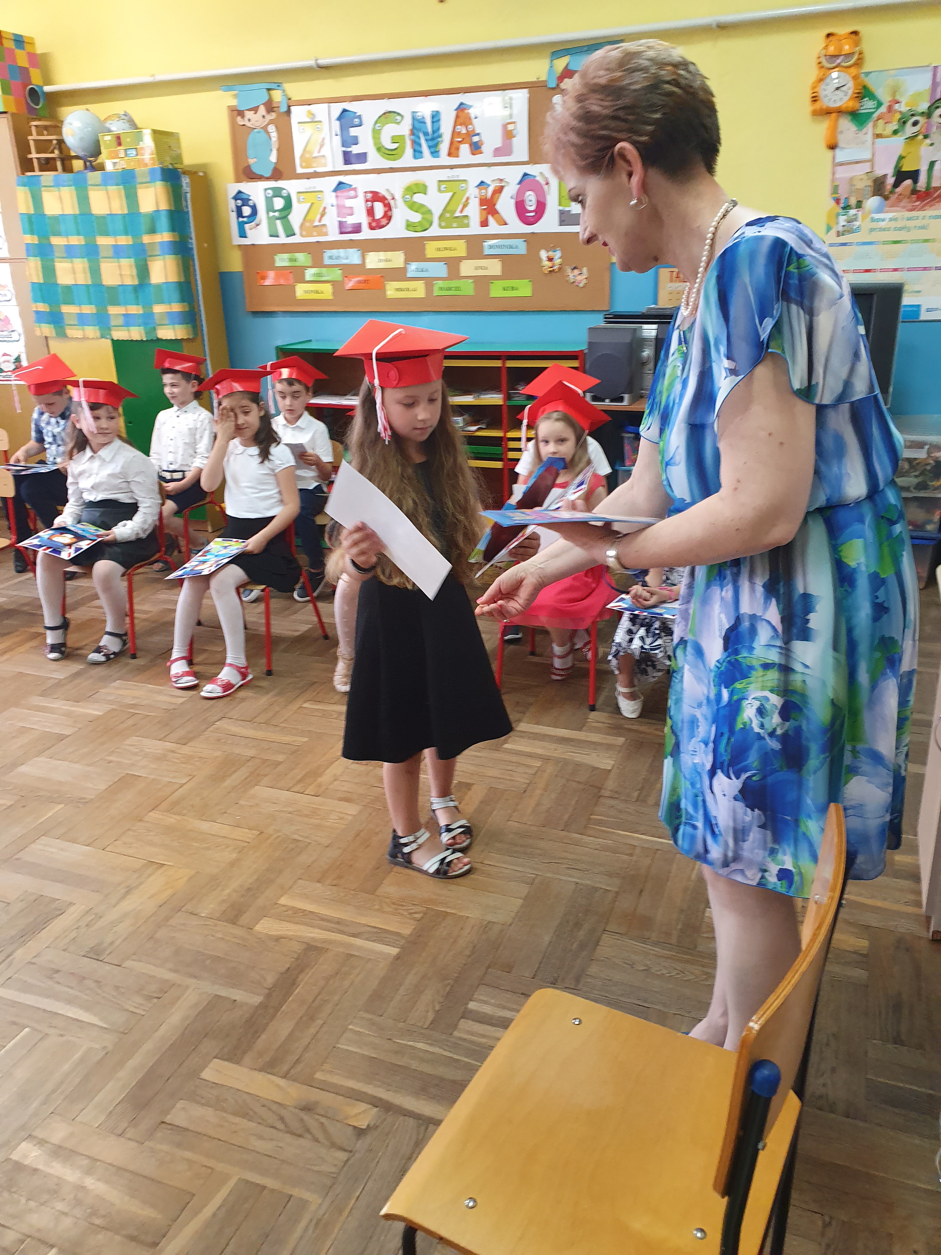 Rodzice podziękowali pani dyrektor, nauczycielom, wszystkim pracownikom, za serce, trud i cierpliwość okazaną ich dzieciom. Wychowawczyni grupy 6-latków, otrzymała od rodziców dyplom wraz ze słowami uznania za trud, wysiłek i pracę włożoną w wychowanie i edukację dzieci. Na koniec były pamiątkowe zdjęcia, a także chwile wzruszenia.