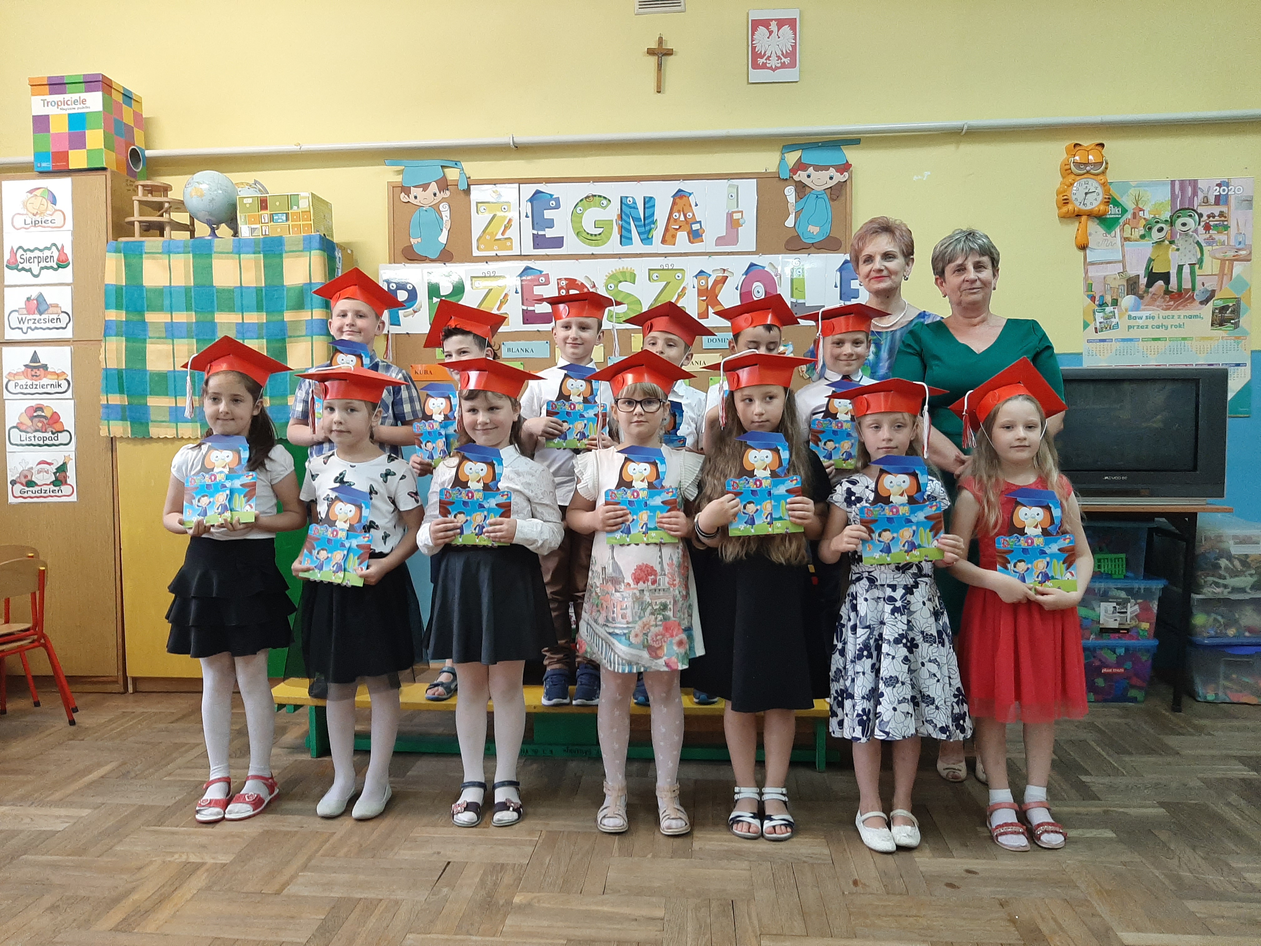 Dnia 26 czerwca 2020 r., w naszym przedszkolu, odbyło się uroczyste zakończenie roku przedszkolnego. Ze względu na zaistniałą sytuację epidemiologiczną, do przedszkola przybyła tylko grupa „Starszaków”, która po wakacjach idzie do pierwszej klasy. Był to niezwykły moment, ponieważ dzieci mogły się zobaczyć po raz pierwszy od dłuższego czasu. Pożegnanie przedszkolaków miało charakter symboliczny – bez części artystycznej.