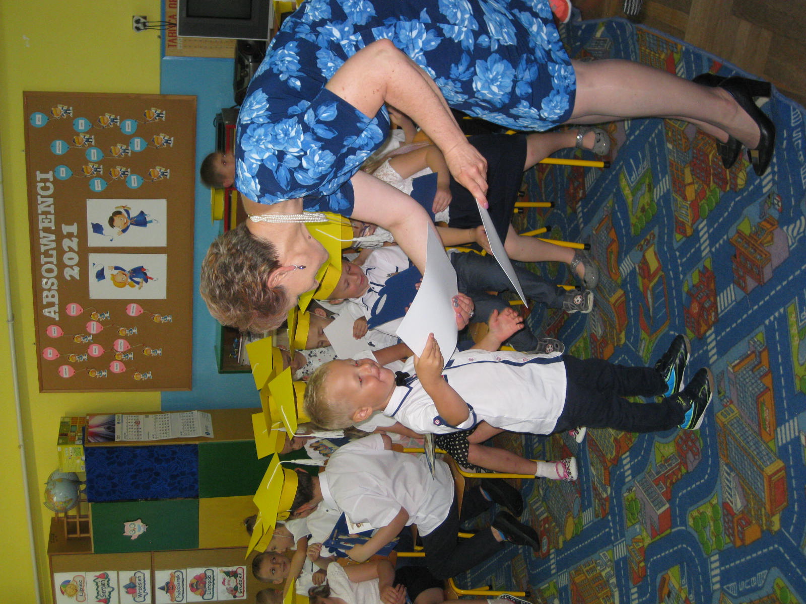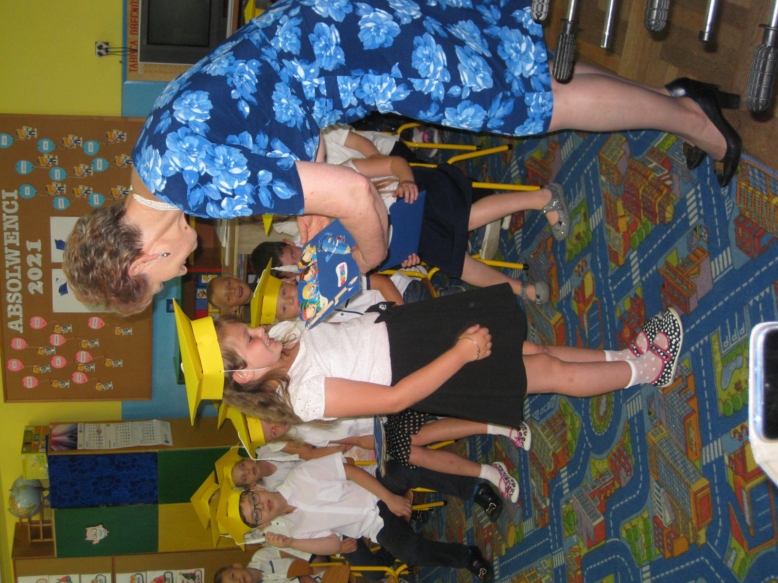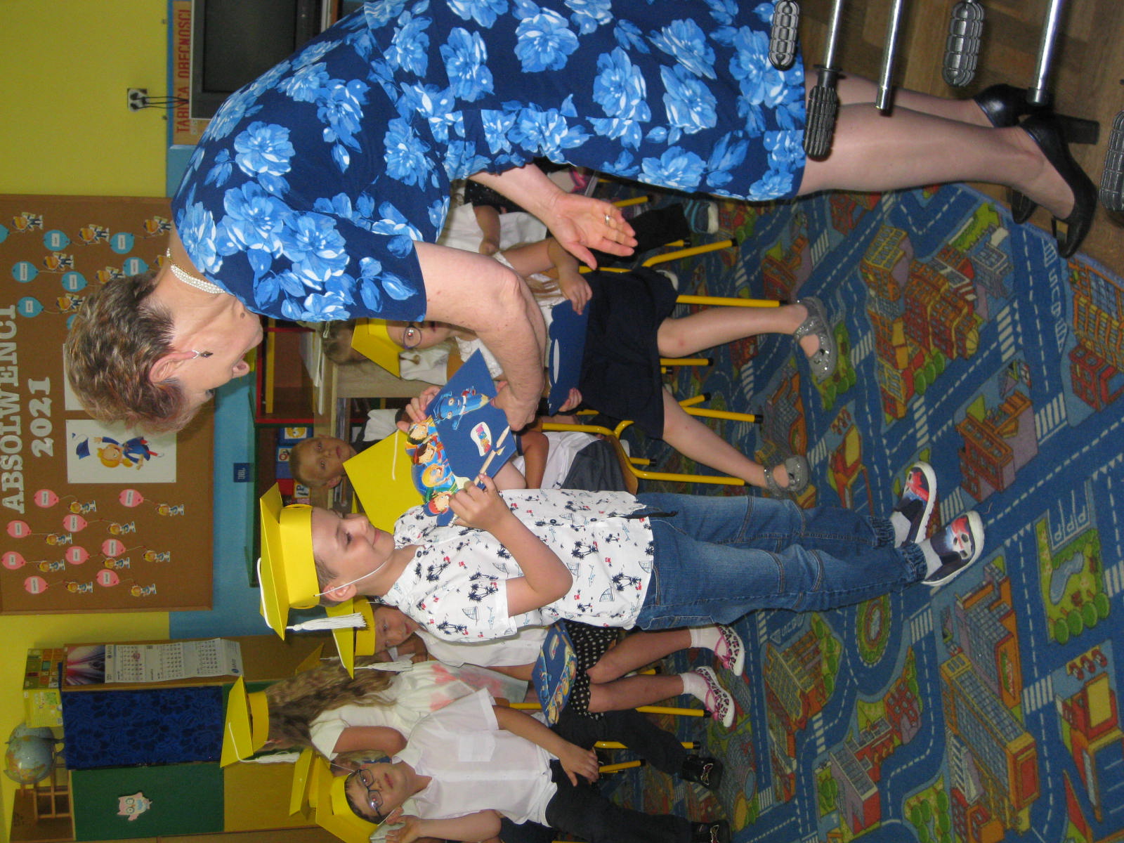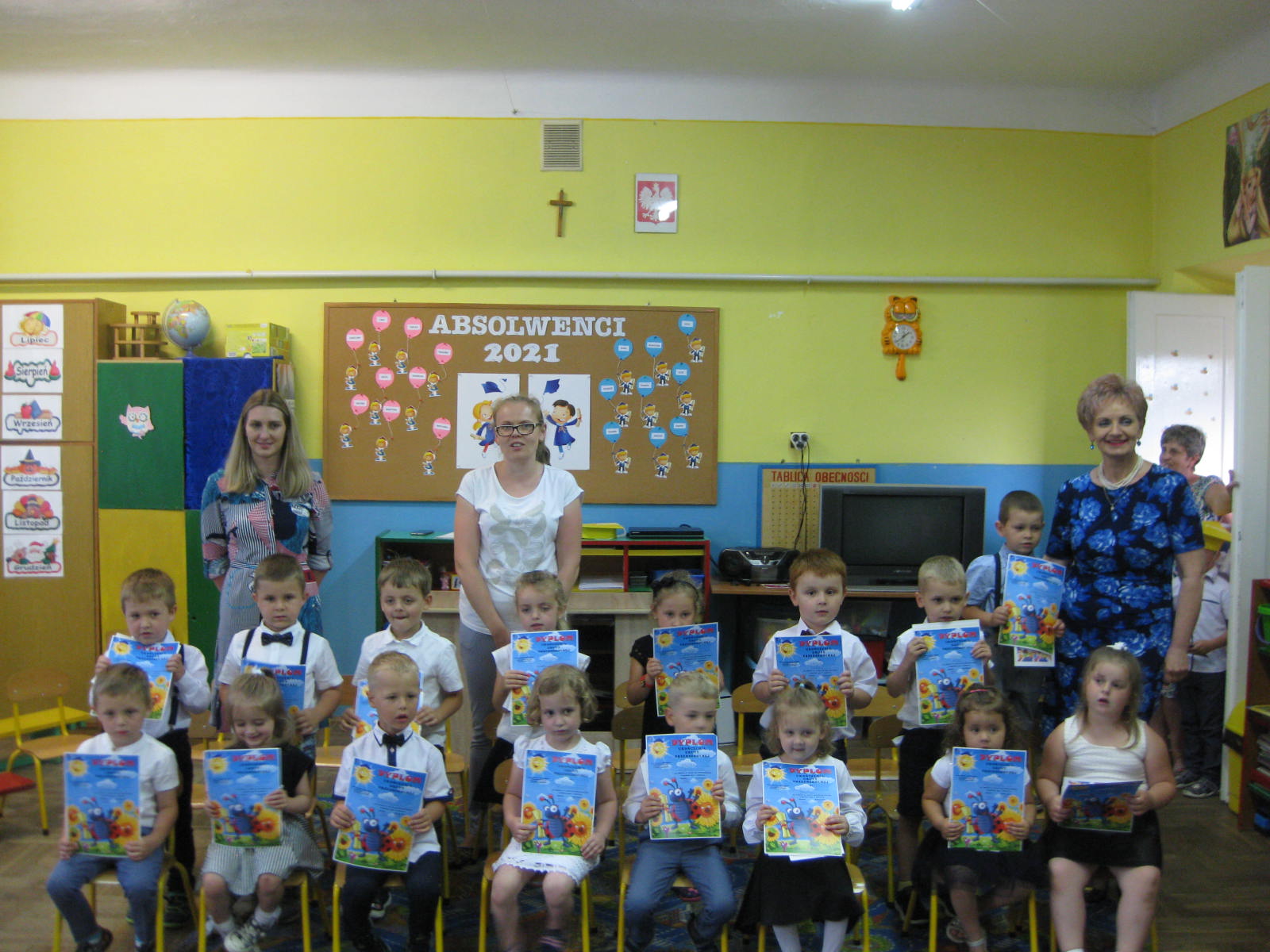 Po części artystycznej pani dyrektor Jadwiga Szara wręczyła dzieciom pamiątkowe dyplomy ukończenia grupy przedszkolnej oraz ukończenia przedszkola, życząc wszystkim wspaniałych wakacji. Szczególnie serdecznie pożegnała przedszkolaki idące do szkoły, kierując do nich życzenia samych sukcesów na nowej drodze obowiązków szkolnych.