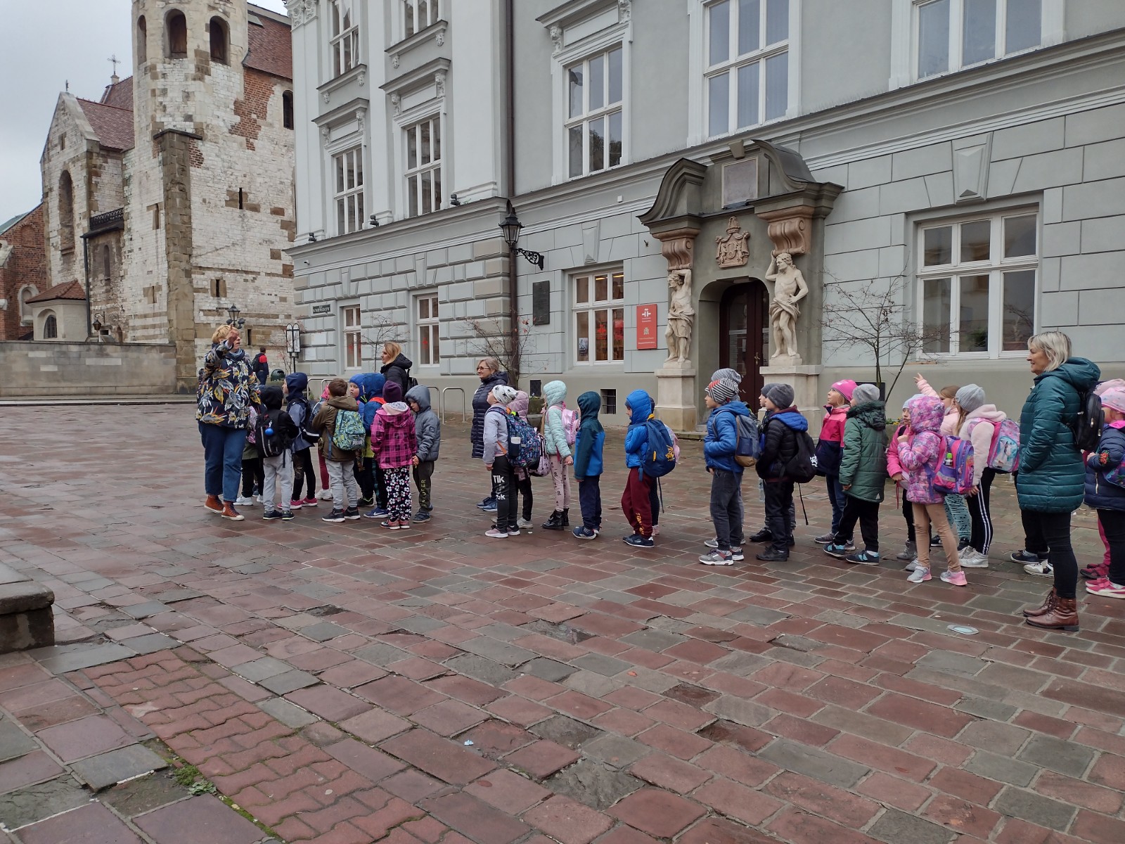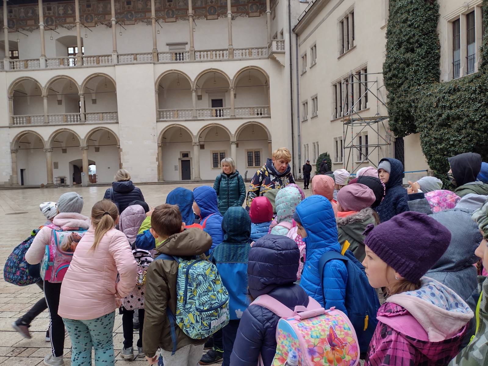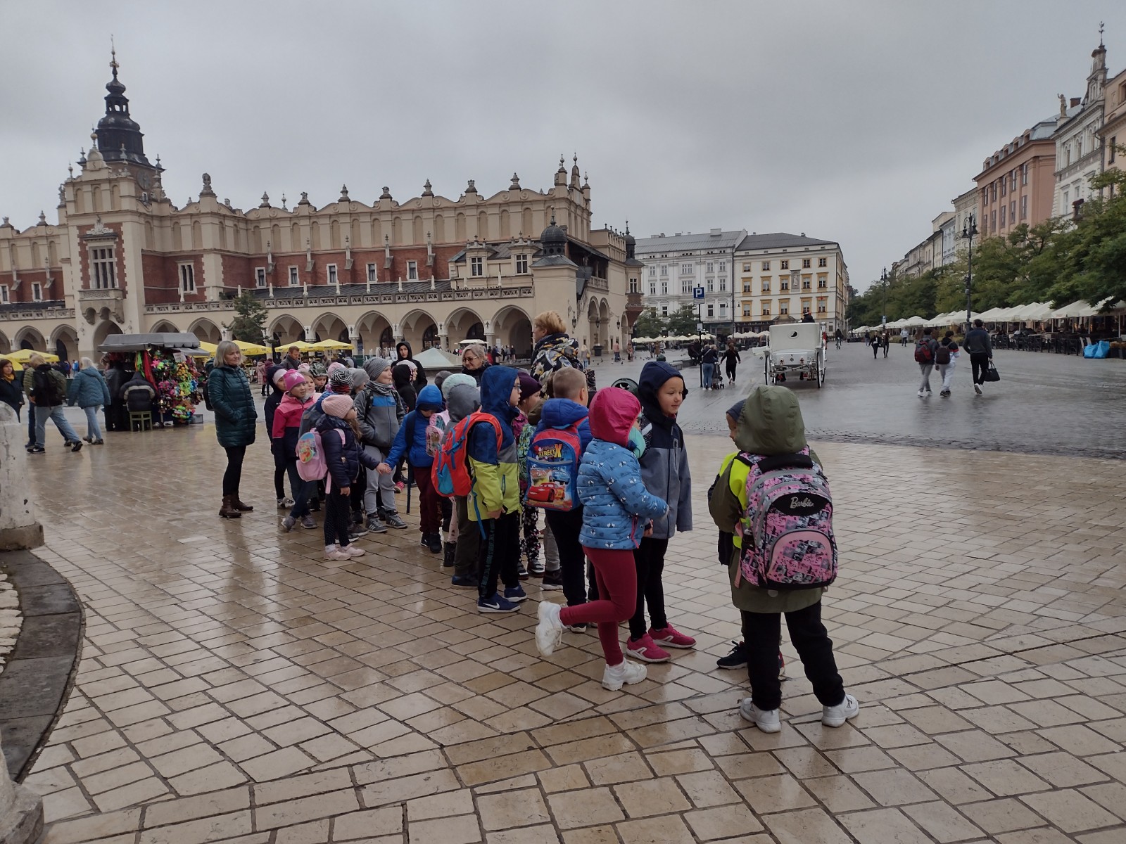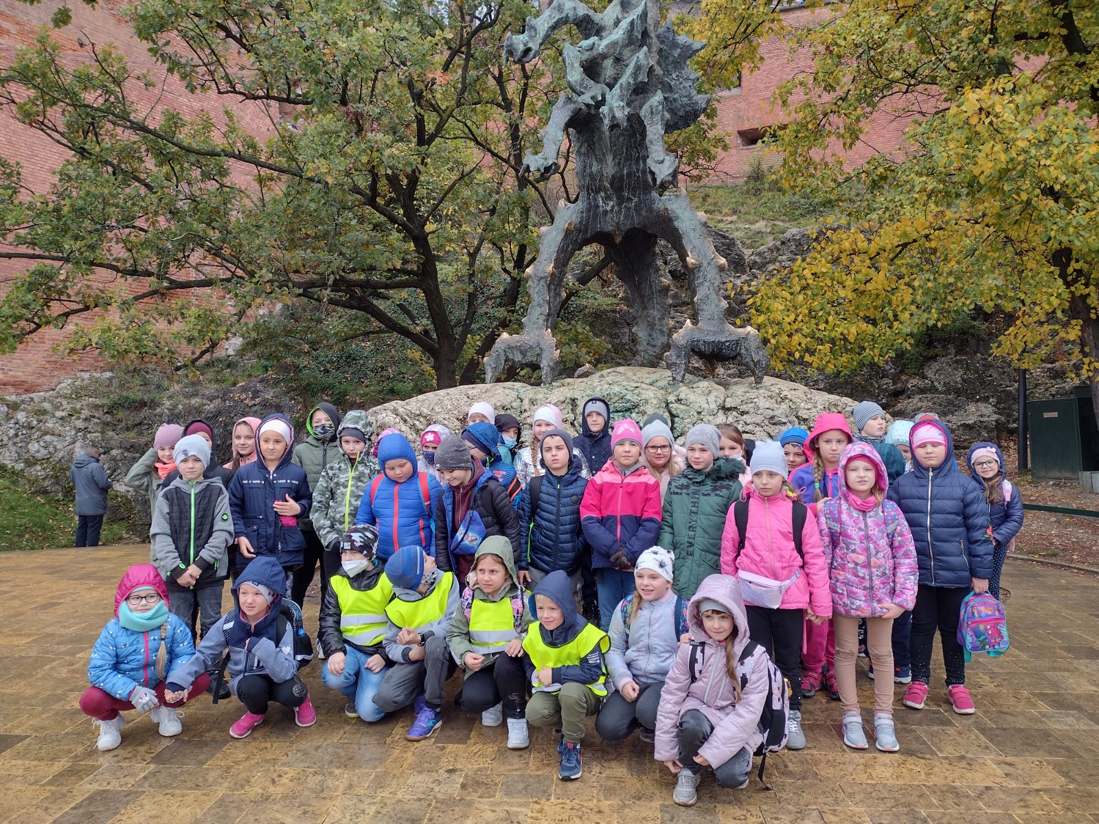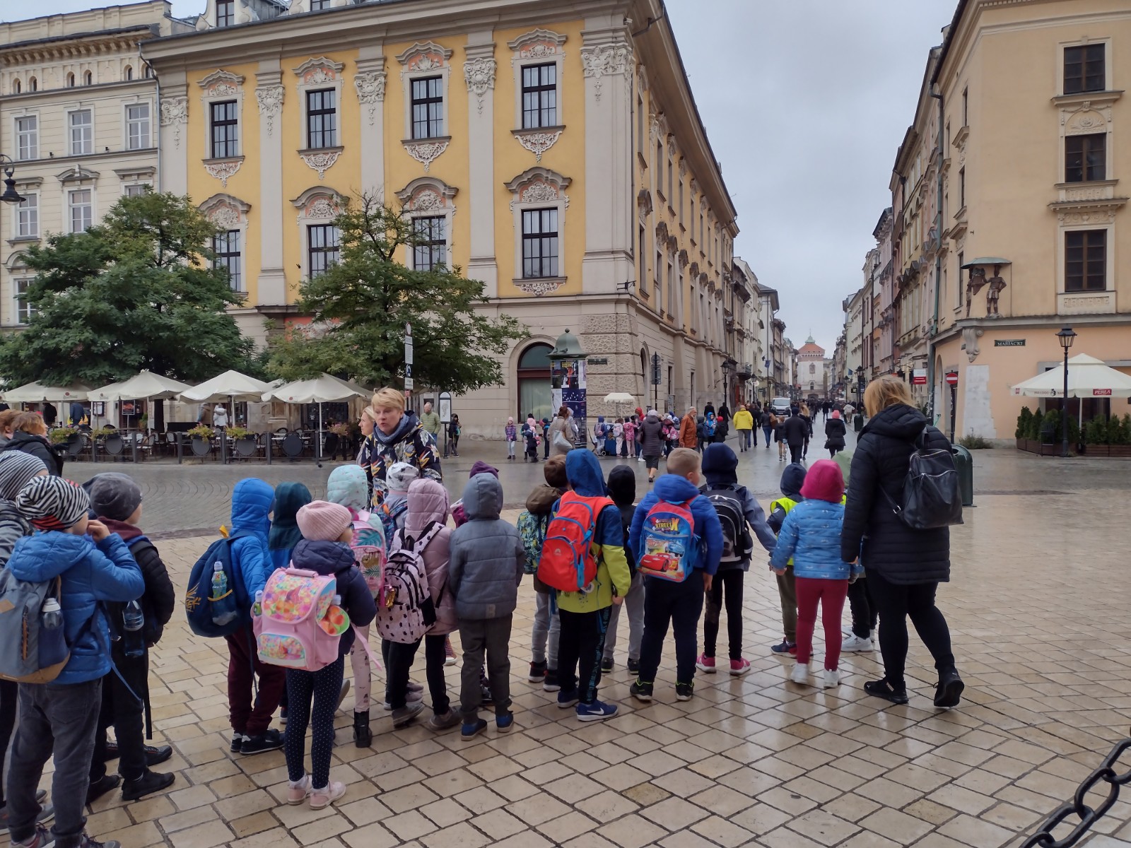 Po przybyciu do Krakowa cała grupa udała się wraz z przewodnikiem na zwiedzanie miasta. Szczególnym wydarzeniem dla dzieci było spotkanie ze smokiem oraz spacer po dziedzińcu Zamku Królewskiego. Następnie uczniowie udali się na Rynek Główny.Podziwiali Sukiennice , pomnik Adama Mickiewicza oraz Kościół Mariacki. W czasie wolnym dzieci mogły kupić sobie pamiątki. Etapem kończącym zwiedzanie Rynku był wspólny obiad. Po krótkim odpoczynku wszyscy udali się autokarem do się do kopalni soli w Bochni.