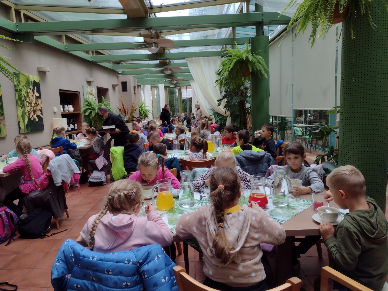 Po przejściu 2 km nadszedł czas na zasłużony odpoczynek w podziemnej sali gimnastycznej. Następnie dzieci wróciły na powierzchnię gdzie zakupiły pamiątki.