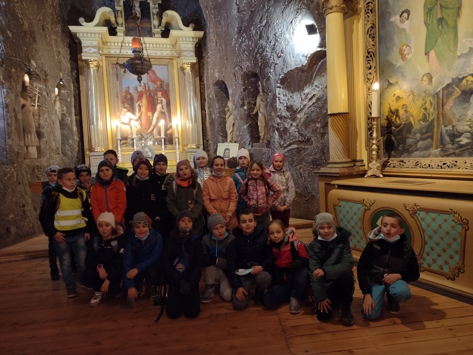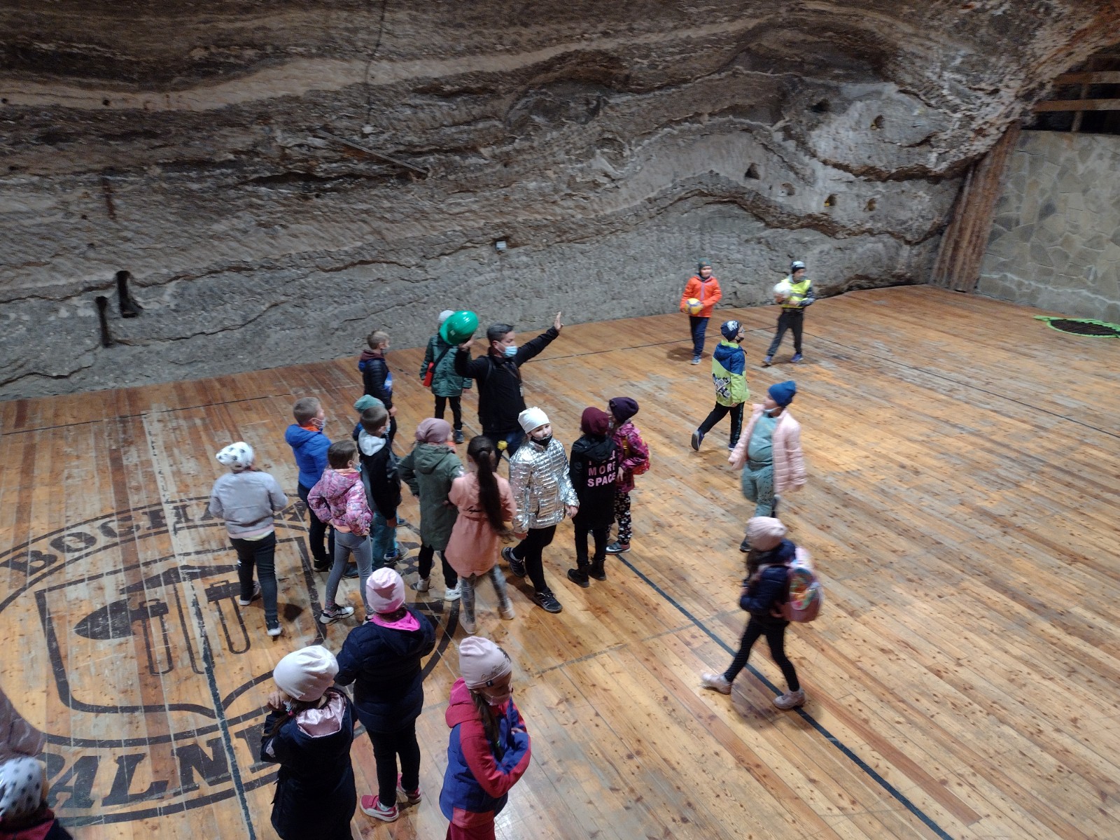 Zwiedzanie kopalni uczniowie rozpoczęli od zjazdu szybem Campi w dół kopalni i podróżą podziemną kolejką, którą przemierzyli kilometrowy odcinek przejeżdżając przez kaplicę św. Kingi. Dzięki multimedialnej trasie turystycznej zwiedzanie kopalni w pokonywanej pieszo drodze powrotnej miało charakter podróży w czasie, rozpoczynającej się w epoce panowania Bolesława Wstydliwego i księżnej Kingi. Za pomocą holograficznych i interaktywnych inscenizacji oraz krótkich filmów dzieci poznały różne sposoby wydobycia soli na przestrzeni lat, zwyczaje górnicze, dawny system transportu oraz zagrożenia występujące w kopalni Przemierzając podziemne tunele uczniowie odkrywali tajemnice tego wyjątkowego miejsca. W kaplicy św. Kingi podziwiały wykute w soli ołtarze i przypomniały sobie legendę o jej patronce i soli.