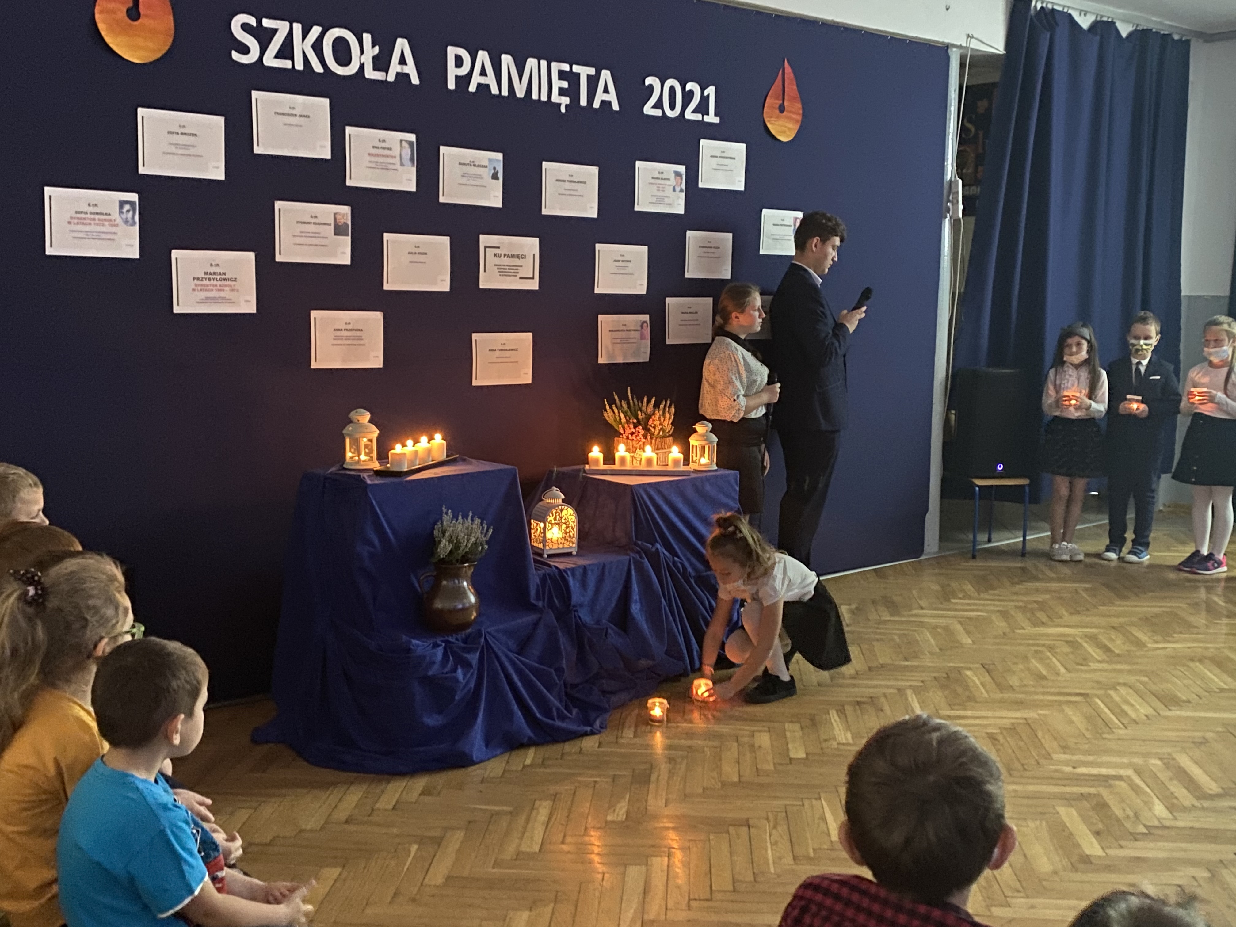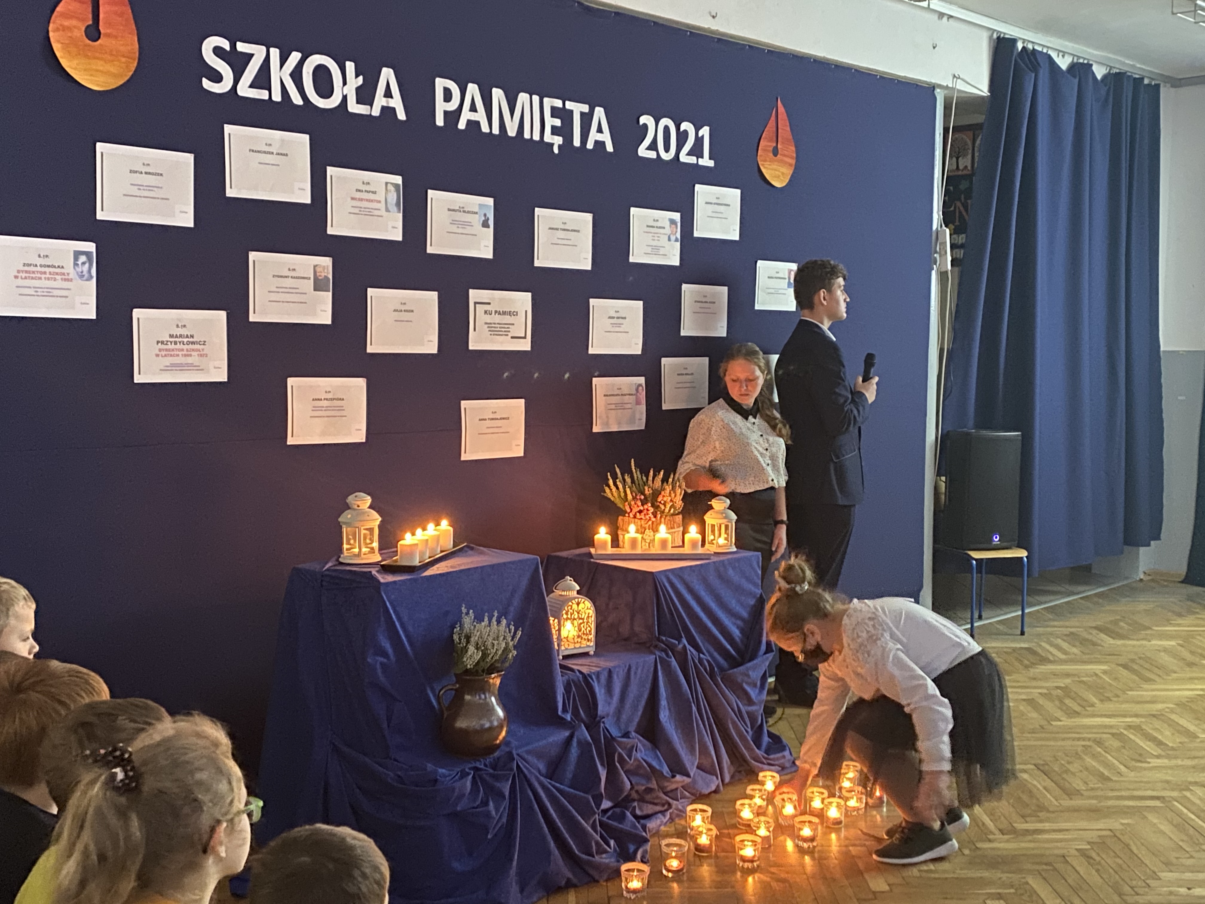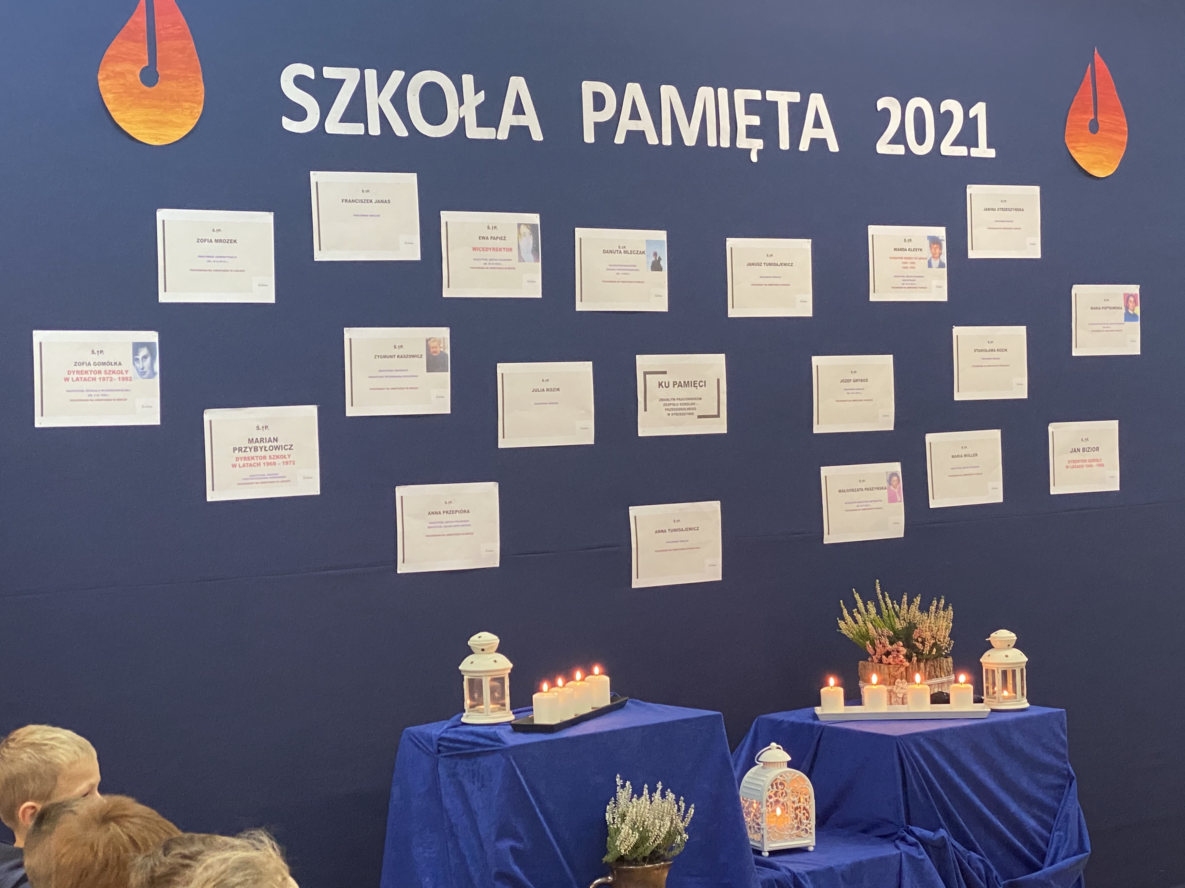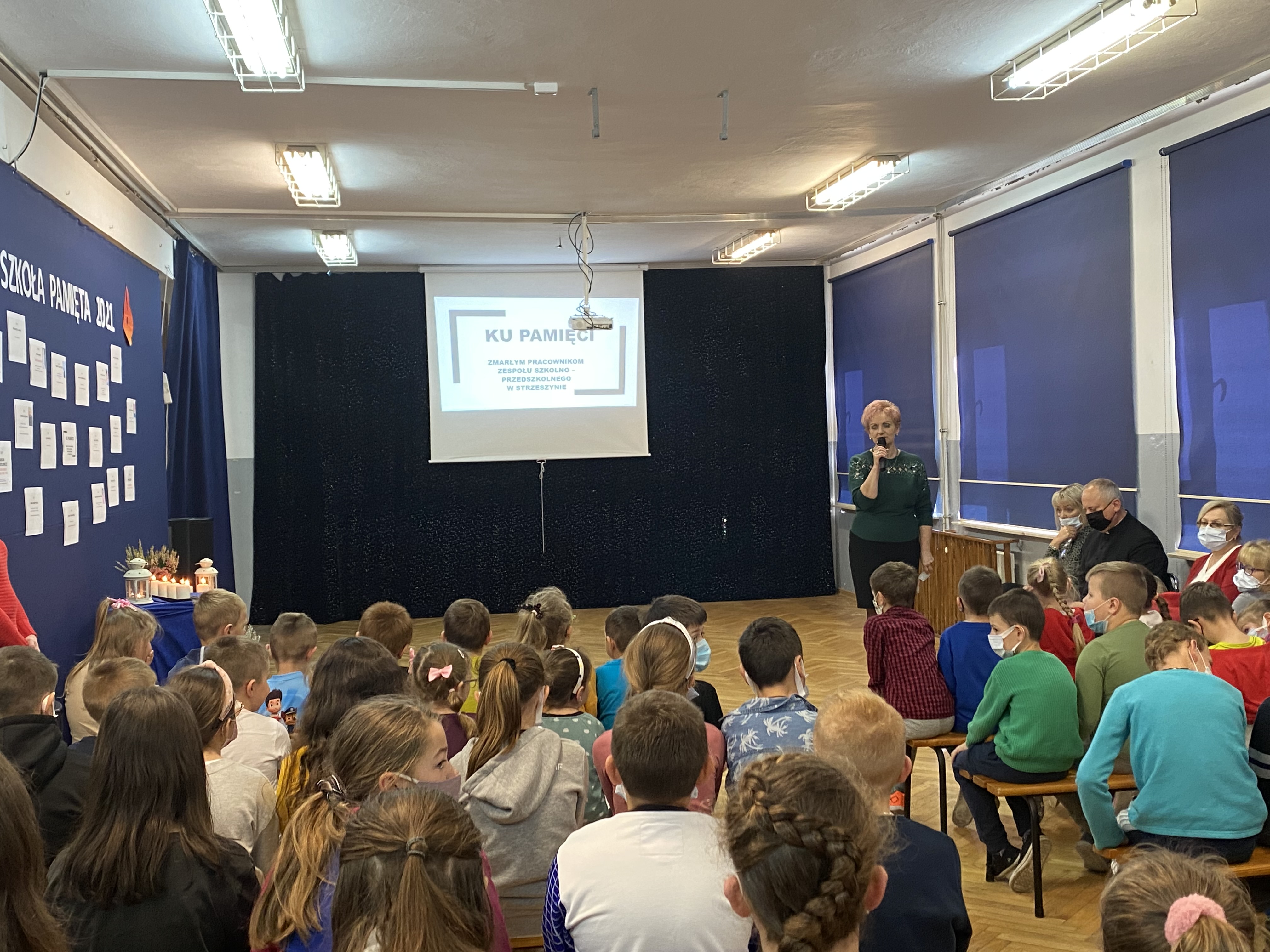3 listopada 2021 roku, w celu upamiętnienia zmarłych pracowników Zespołu Szkolno – Przedszkolnego w Strzeszynie, uczniowie klasy II, III i VIII wraz z nauczycielami przygotowali dla całej szkoły akademię oraz prezentację, która przypomniała i przybliżyła sylwetki tych, których już nie ma wśród nas. Po prezentacji została odmówiona modlitwa w intencji zmarłych oraz zapaliliśmy znicze, które położyliśmy przy symbolicznym pomniku upamiętniającym, tych którzy już odeszli.