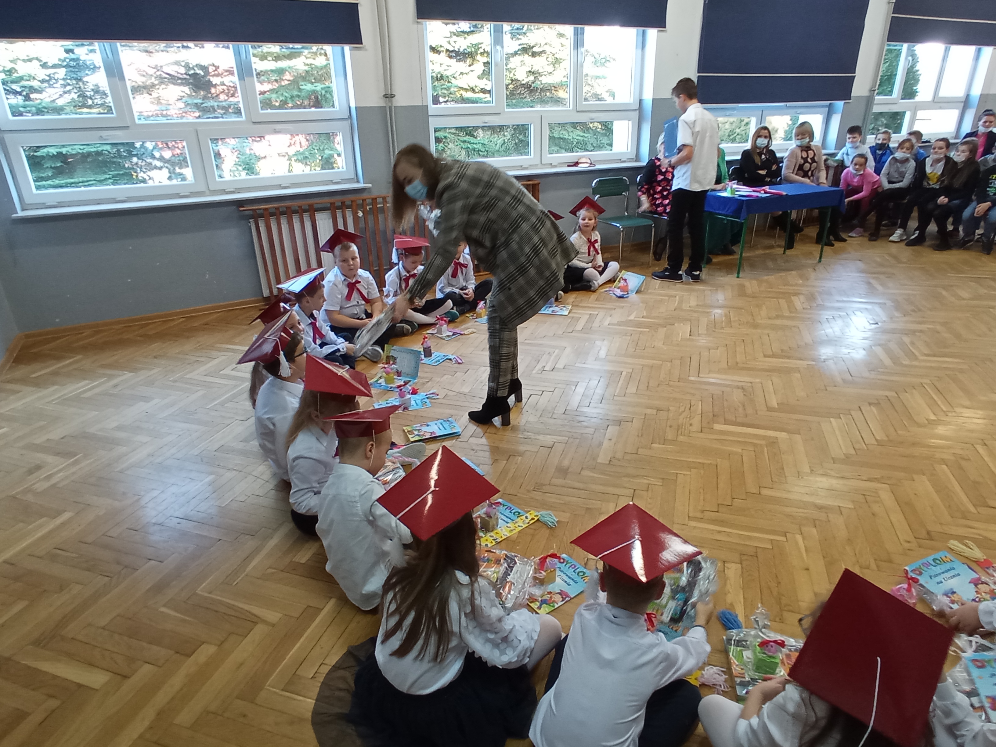 Jak co roku, uczniowie klasy pierwszej z wielkim zapałem rozpoczęli naukę w naszej szkole. 25 listopada 2021 r. odbyła się uroczystość PASOWANIA NA UCZNIA. Jest to szczególny dzień, który na długo pozostanie w pamięci każdego pierwszoklasisty. Pasowanie to jedno z najważniejszych wydarzeń w szkolnym życiu. Od tego dnia każde dziecko czuje się już prawdziwym uczniem, czyli pełnoprawnym członkiem szkolnej rodziny. Uroczystość prowadzili starsi koledzy z klasy VII, którzy przygotowali dla kandydatów na uczniów egzamin. Dzieci z klasy pierwszej zaprezentowały swoje wiadomości i umiejętności wykonując różne zadania: recytowały wiersze, rozwiązywały zagadki, śpiewały piosenki, wykazały się wiedzą o ojczyźnie i ruchu drogowym. Wszystkie zadania wykonały bardzo dobrze i mogły przystąpić do ślubowania. Pierwszaki głośno i z przekonaniem przyrzekały być dobrymi i pilnymi uczniami oraz rzetelnie wypełniać swoje obowiązki. Największym przeżyciem dla dzieci był moment pasowania. Pani Dyrektor Jadwiga Szary poprzez dotknięcie ogromnym, zaczarowanym ołówkiem ramienia każdego dziecka, zamieniała go w PRAWDZIWEGO UCZNIA. Następnie uczniowie otrzymali pamiątkowe dyplomy, legitymacje szkole i upominki. Na zakończenie uroczystości zrobiono zdjęcia, a potem odbyły się pląsy przy dźwiękach skocznej muzyki i pyszny poczęstunek przygotowany przez rodziców. To był wyjątkowy dzień dla najmłodszych wychowanków, którym życzymy sukcesów i przyjemnego pobytu w murach Szkoły Podstawowej im. Mikołaja Kopernika w Strzeszynie.