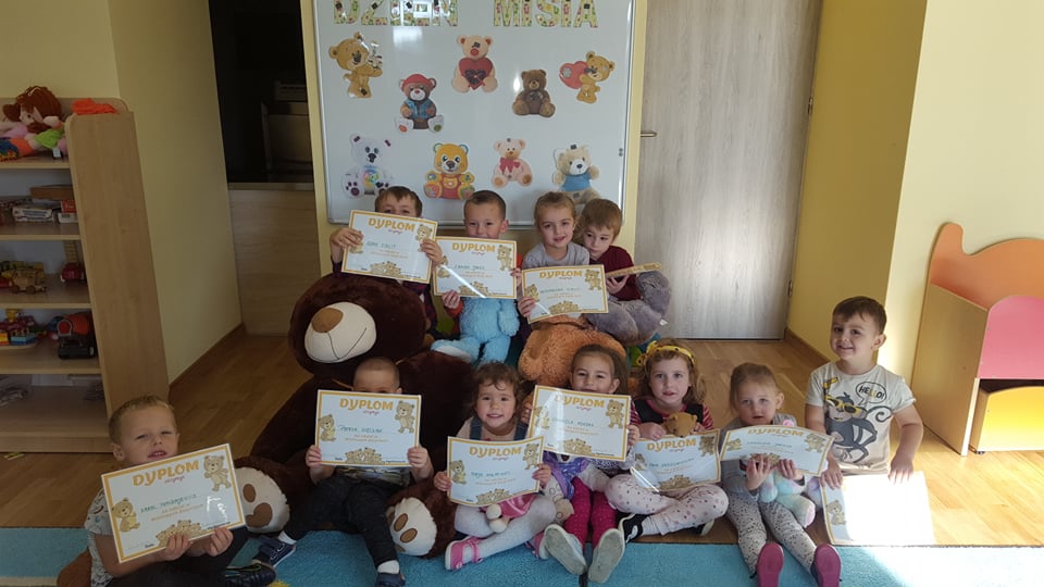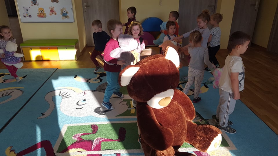W dniu 25.11. 2021 r przedszkolaki z naszego przedszkola uczestniczyły w obchodach Światowego Dnia Pluszowego Misia. Każde dziecko przyszło do przedszkola ze swoim milutkim przyjacielem. Można było zobaczyć misie duże, średnie, małe, brązowe, białe. Były śliczne i wyjątkowe. W tym wesołym dniu przedszkolaków czekało wiele atrakcji. Zostały zaproszone do wspólnej zabawy ze swoimi misiami, poznały historie ich święta, słuchały bajek o misiach. Bawiły się przy piosenkach, brały udział w zabawach ruchowych, konkursach, quizach, wykonywały prace plastyczne. Degustowały miód i były szczęśliwe, iż mogą spędzić tyle czasu ze swoimi pluszowymi ulubieńcami.