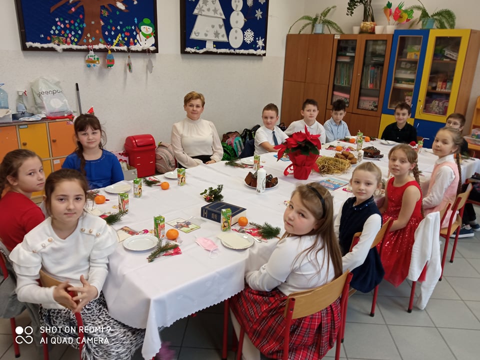 Przy wigilijnym stole zasiadamy nie tylko w gronie rodziny, ale również wśród kolegów z klasy i nauczycieli. Zgodnie z tradycją w dniu 17 grudnia nasi uczniowie radując się wspólnie spędzonym czasem, śpiewali kolędy, składali sobie nawzajem życzenia, ozdabiali pierniczki i częstowali się przygotowanymi przez rodziców smakołykami. Atmosfera przepełniona ciepłem, radością i miłością pozwoliła jeszcze bardziej odczuć, że już za tydzień będziemy świętować w gronie najbliższych Boże Narodzenie.