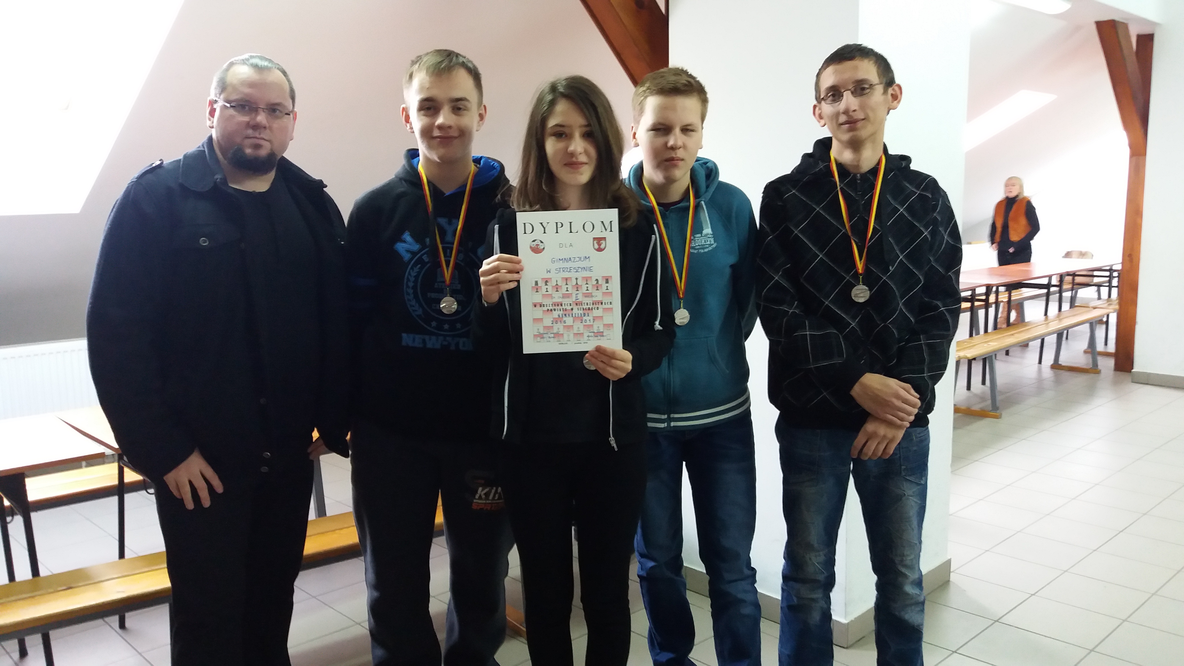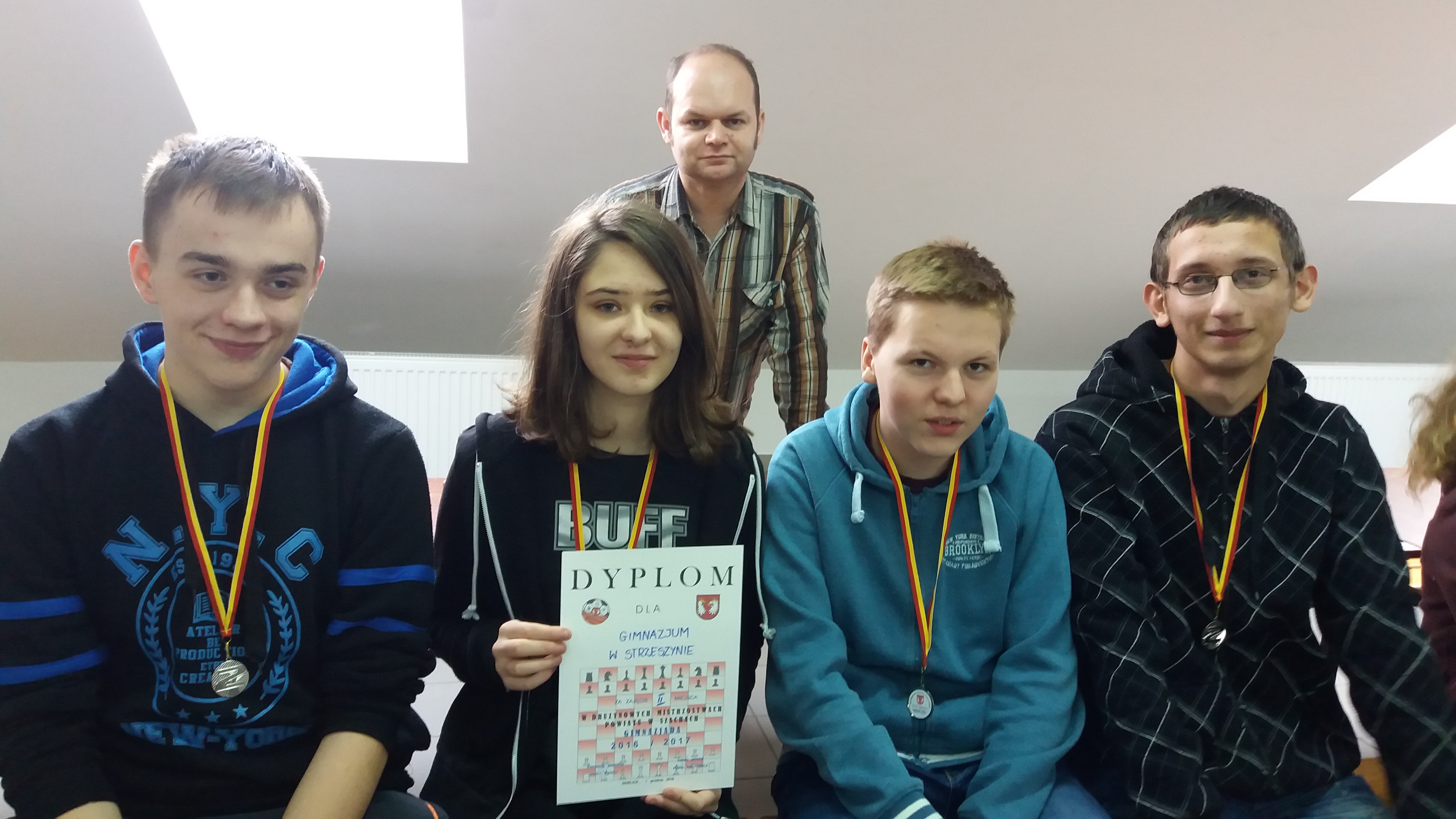 Był to turniej drużynowy – każda drużyna składała się z 3 chłopców i jednej dziewczynki. Turniej rozegrano systemem kołowym na dystansie 10 minut na zawodnika. Publiczne Gimnazjum w Strzeszynie reprezentowali uczniowie klasy III w składzie: Weronika Wilczkiewicz, Marek Kamień, Daniel Przybyła i Karol Proszak. Ostatecznie nasi szachiści zajęli II miejsce. W nagrodę otrzymali dyplom oraz medale.