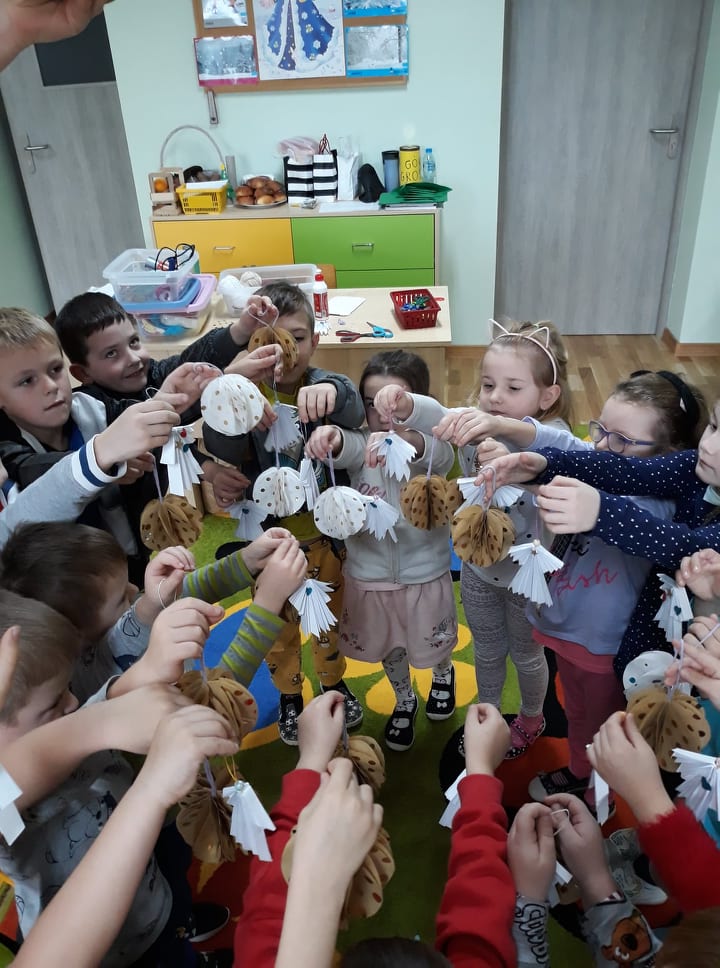 Dnia 09.12.2021r. nasze przedszkole zamieniło się na moment w pracownię plastyczną, w której działo się wiele rzeczy. Celem warsztatów było rozbudzanie aktywności dzieci, odczuwanie radości z podejmowanych działań. Dzieci wykonały pełne uroku bombki świąteczne i aniołki, wykazując przy tym wiele kreatywności i pomysłowości. Zorganizowane warsztaty były radosnym przeżyciem i przeniosły wszystkich w nastrój oczekiwania na utęsknione Święta Bożego Narodzenia.