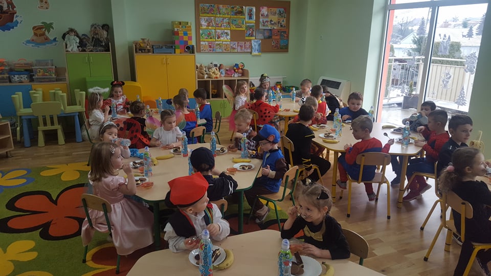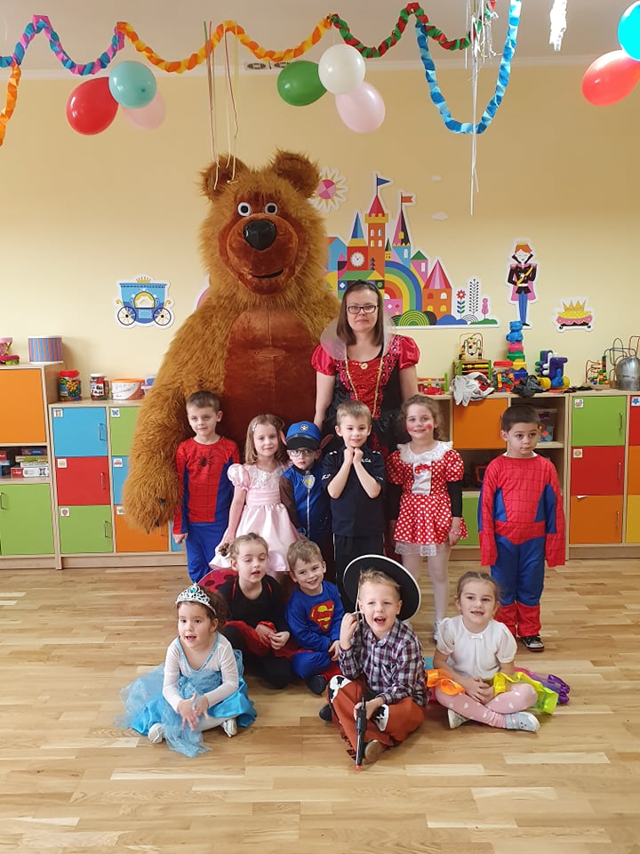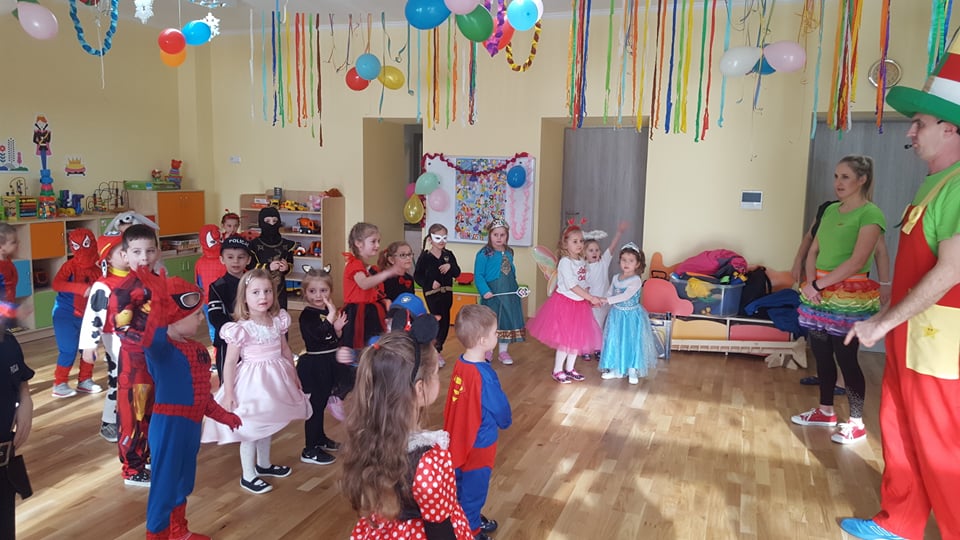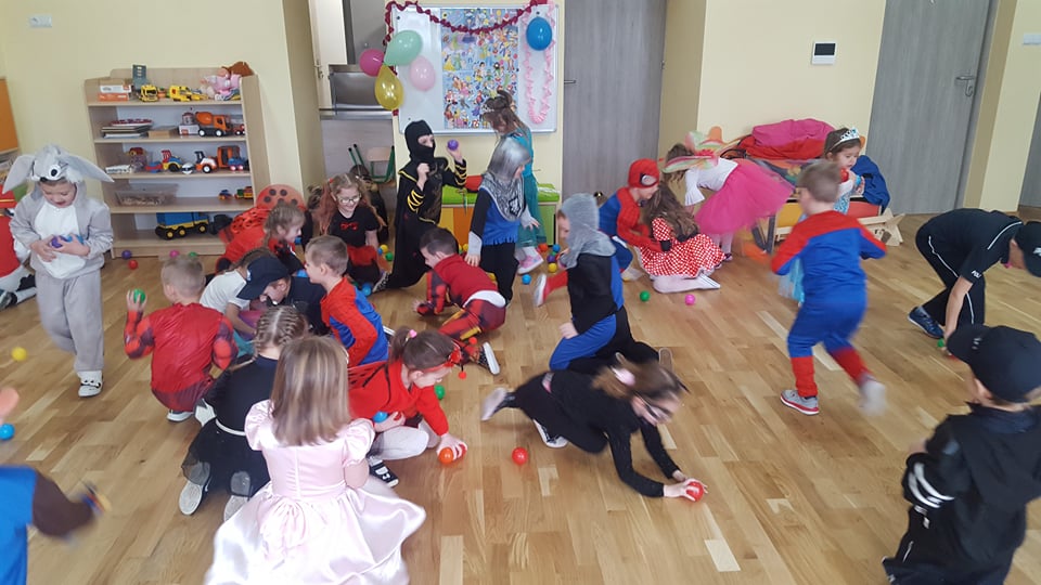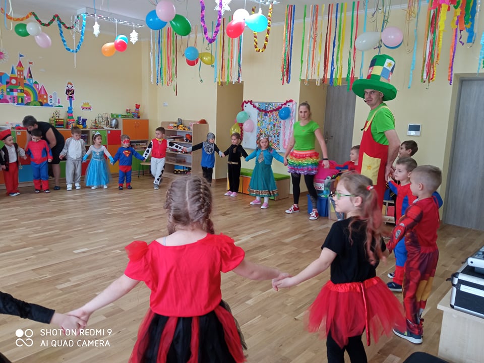 Karnawał to wspaniały okres balów, zabaw, a także nieodłączny element dzieciństwa. Jest on atrakcyjną i bardzo lubianą formą rozrywki. Tak też było w naszym przedszkolu. Sala grupy „Biedronki” ozdobiona została balonami, bibułą i serpentyną. Rodzice przygotowali dla swoich pociech ciekawe stroje karnawałowe. Zabawę prowadziła grupa „Zwariowani”: atrakcją dodatkową był Niedźwiedź, przyjaciel Maszy oraz Kubuś Puchatek. W rytm skocznej muzyki rozpoczęły się tańce, przeplatane zabawami, pokazem palących baniek mydlanych, iluzji. Wiele radości sprawiły dzieciom zabawy z kolorowymi kulkami. Radosny, szeroki uśmiech na buźkach naszych dzieci to najlepsze podsumowanie wspólnej zabawy. Pozostały wspomnienia, które będą nam towarzyszyć do kolejnego balu karnawałowego.