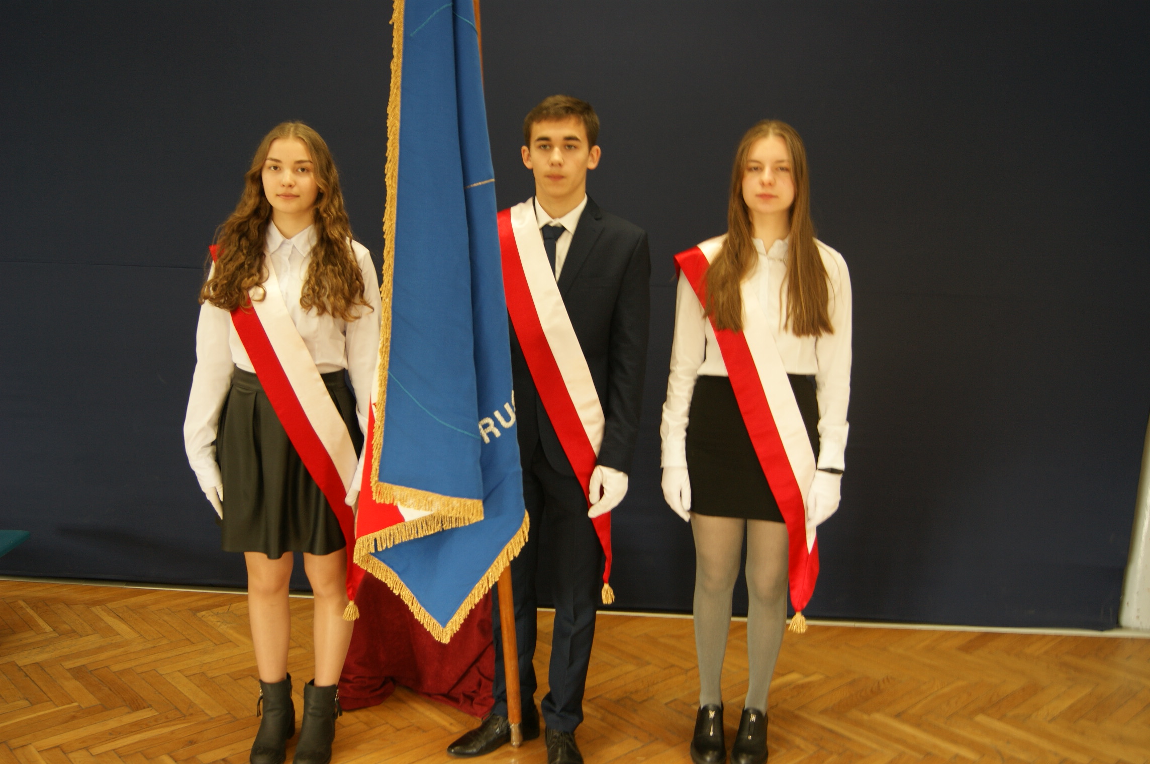 Okolicznościowe spotkanie rozpoczęło się wprowadzeniem Sztandaru Szkoły i odśpiewaniem Hymnu Państwowego.