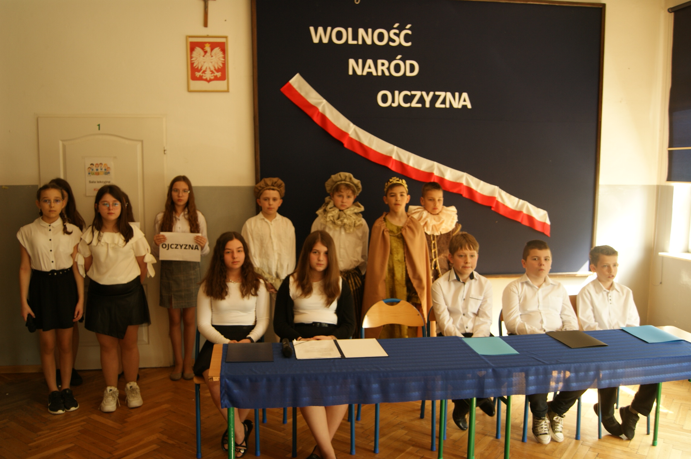 Część artystyczna utrzymana była w konwencji sejmiku uczniowskiego, którego celem było przekazanie, w zrozumiały sposób, jak ważnym wydarzeniem było uchwalenie Konstytucji 3 Maja. Uczniowie starali się odpowiedzieć na pytania, czym dla nas jest Ojczyzna, Naród, Wolność oraz zachęcić uczestników uroczystości do chwili refleksji nad tak ważnymi dla każdego Polaka sprawami. Piątoklasiści przypomnieli ważne wydarzenie z historii naszego kraju, które wszyscy powinniśmy znać, bo przecież naród, który nie zna swej przeszłości, ginie i nie buduje przyszłości.