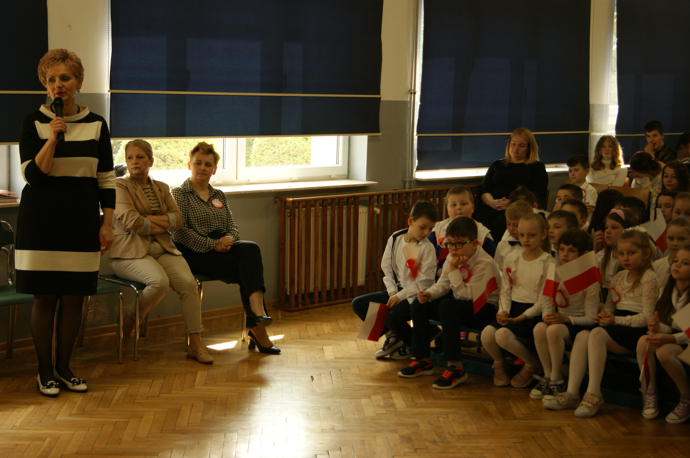 Po części artystycznej głos zabrała pani dyrektor, Jadwiga Szara, która podkreśliła, że majowe święta kojarzą się z radością i nadzieją, ale przede wszystkim uczą patriotyzmu i właściwej postawy obywatelskiej. Zachęcała również zebranych, aby udekorowali swoje domy flagami narodowymi.