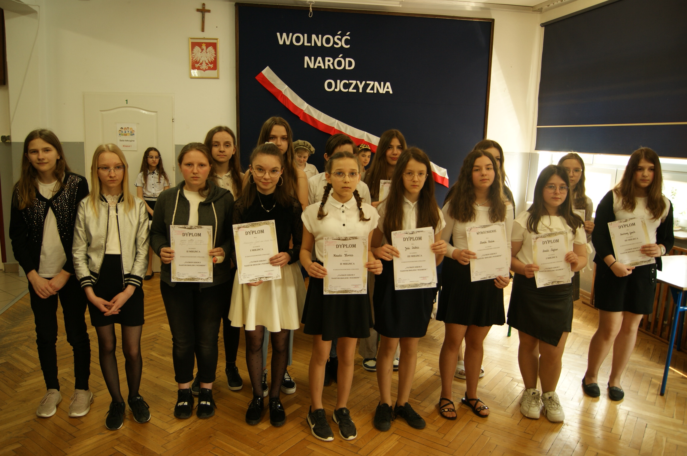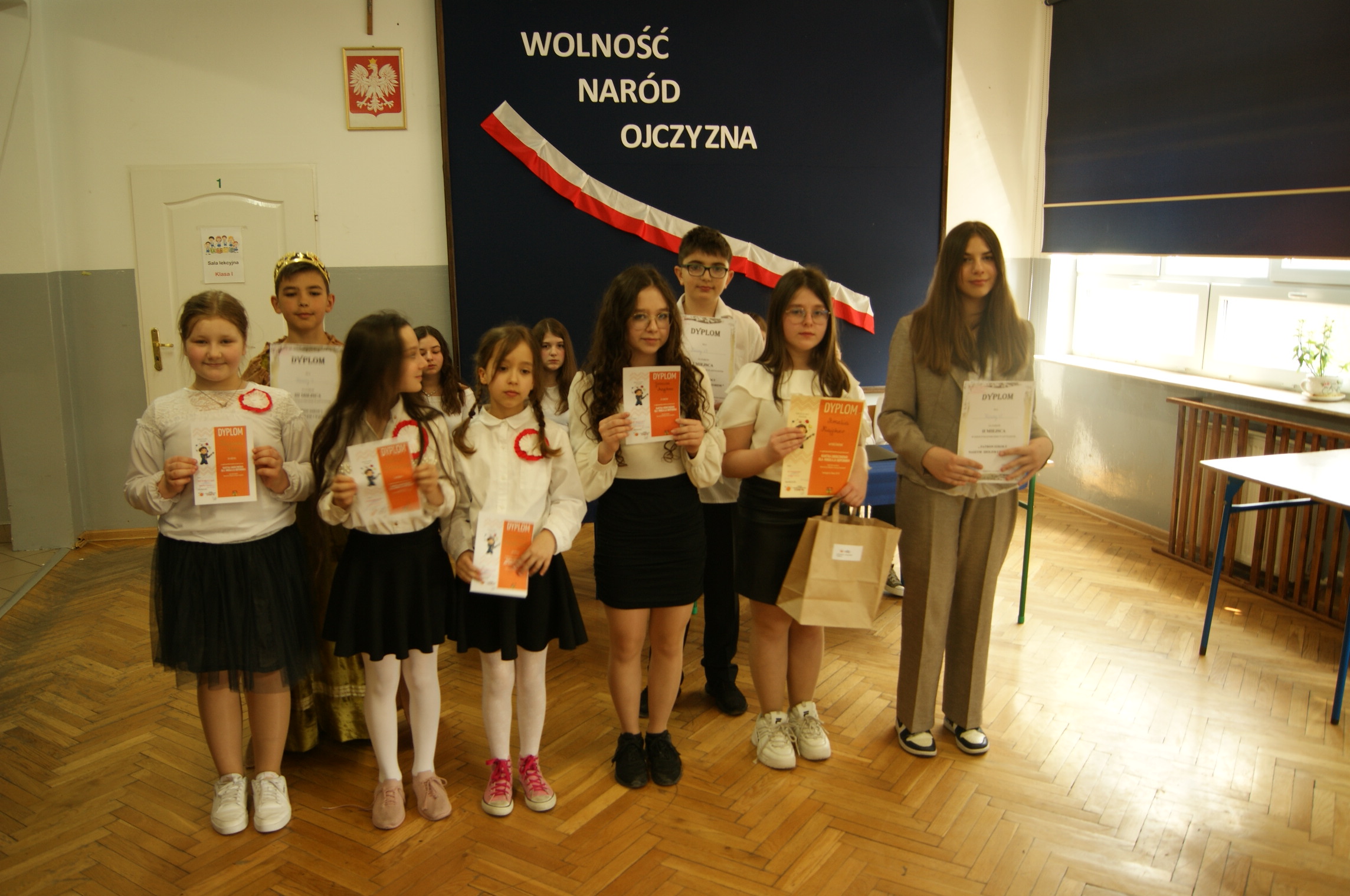 Pani dyrektor wręczyła także dyplomy i nagrody za udział w szkolnym konkursie literacko-plastycznym, ogłoszonym z okazji obchodów Dnia Patrona Szkoły oraz w konkursie związanym z Dniem bez Plecaka.