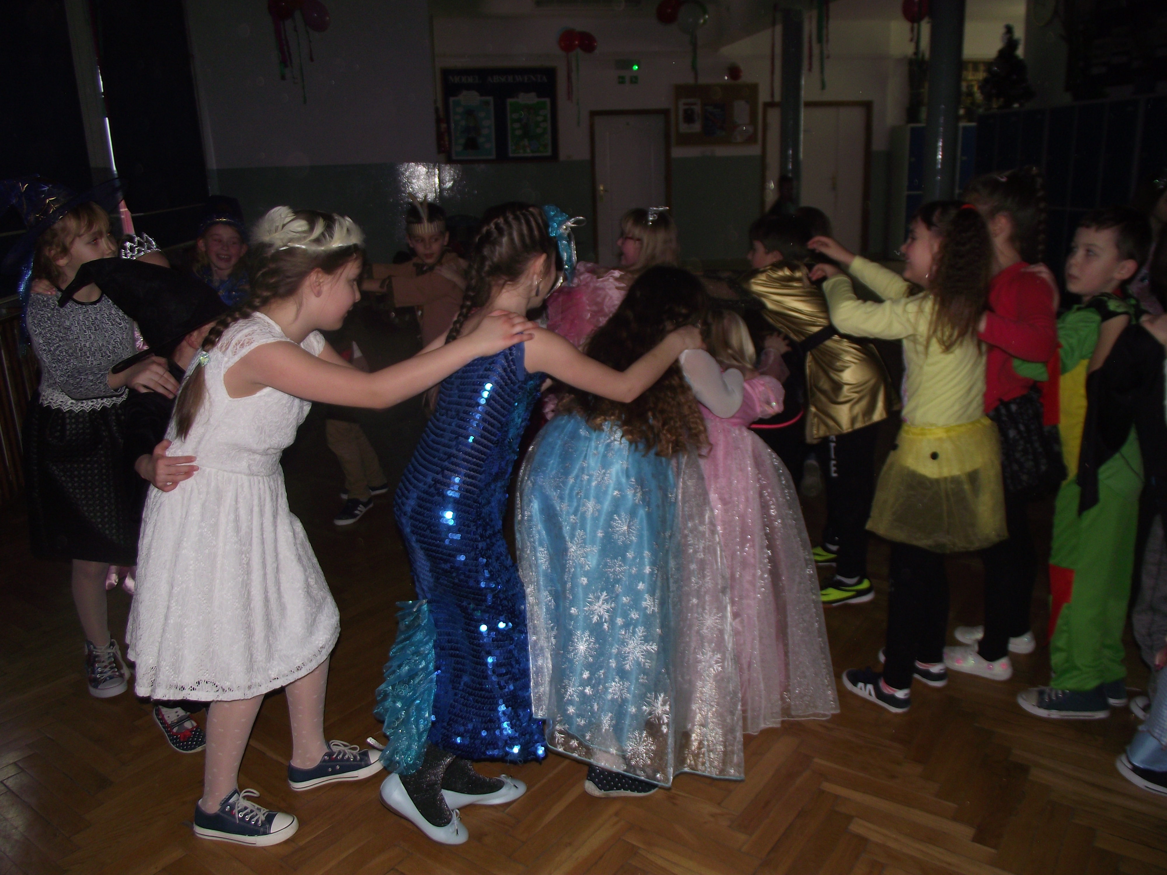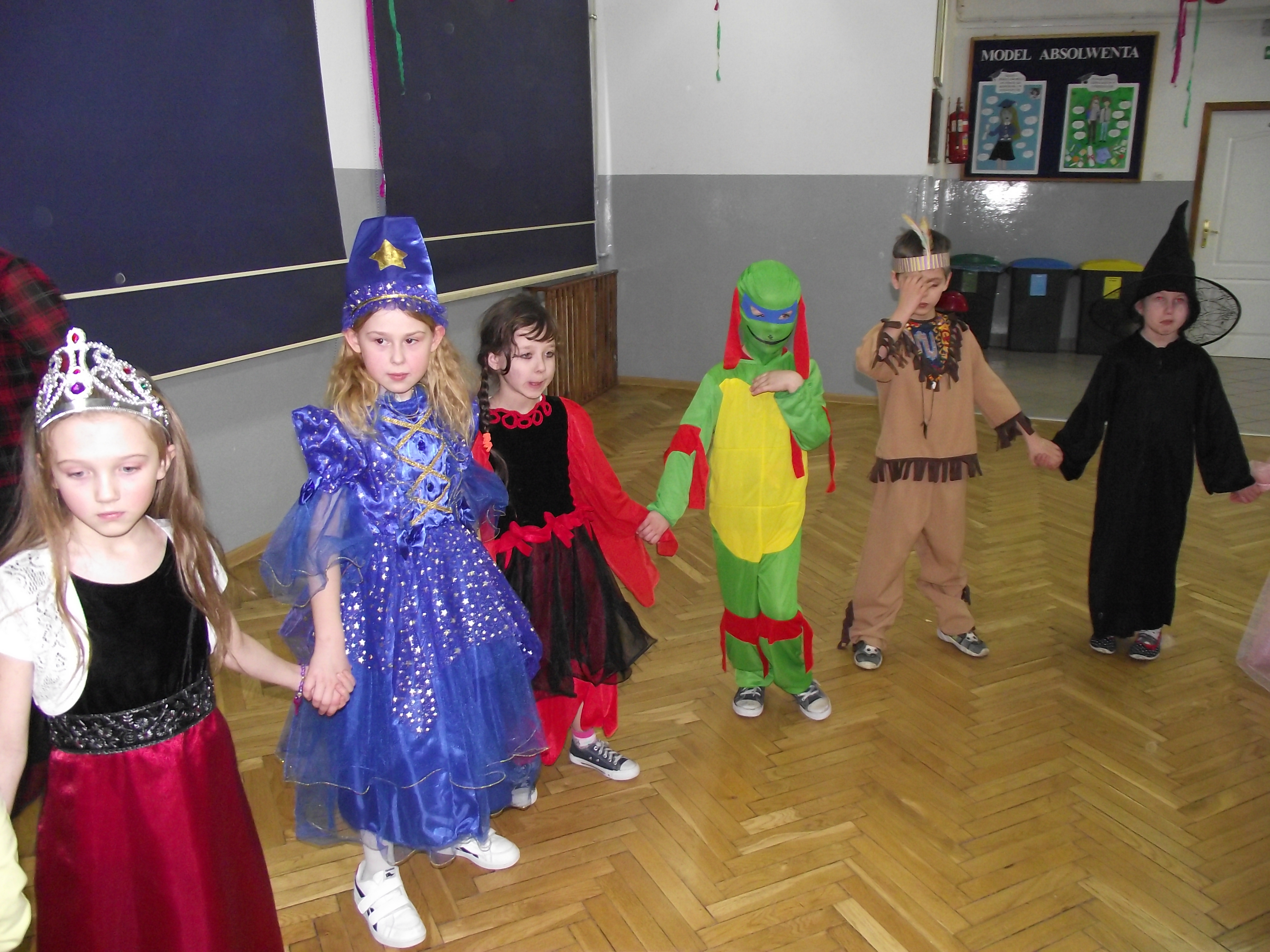 Jak co roku, w karnawale w naszej szkole odbył się oczekiwany przez dzieci klas I-III „Bal Przebierańców”. W czwartek 26 stycznia pięknie udekorowany balonami i kolorowymi wstążeczkami hol szkoły, zamienił się w salę balową. Przygotowaniem sali oraz obsługą sprzętu muzycznego zajęli się przedstawiciele Samorządu Uczniowskiego Gimnazjum. Na parkiecie zaroiło się od księżniczek, wróżek, czarownic, piratów, żołnierzy, rycerzy,