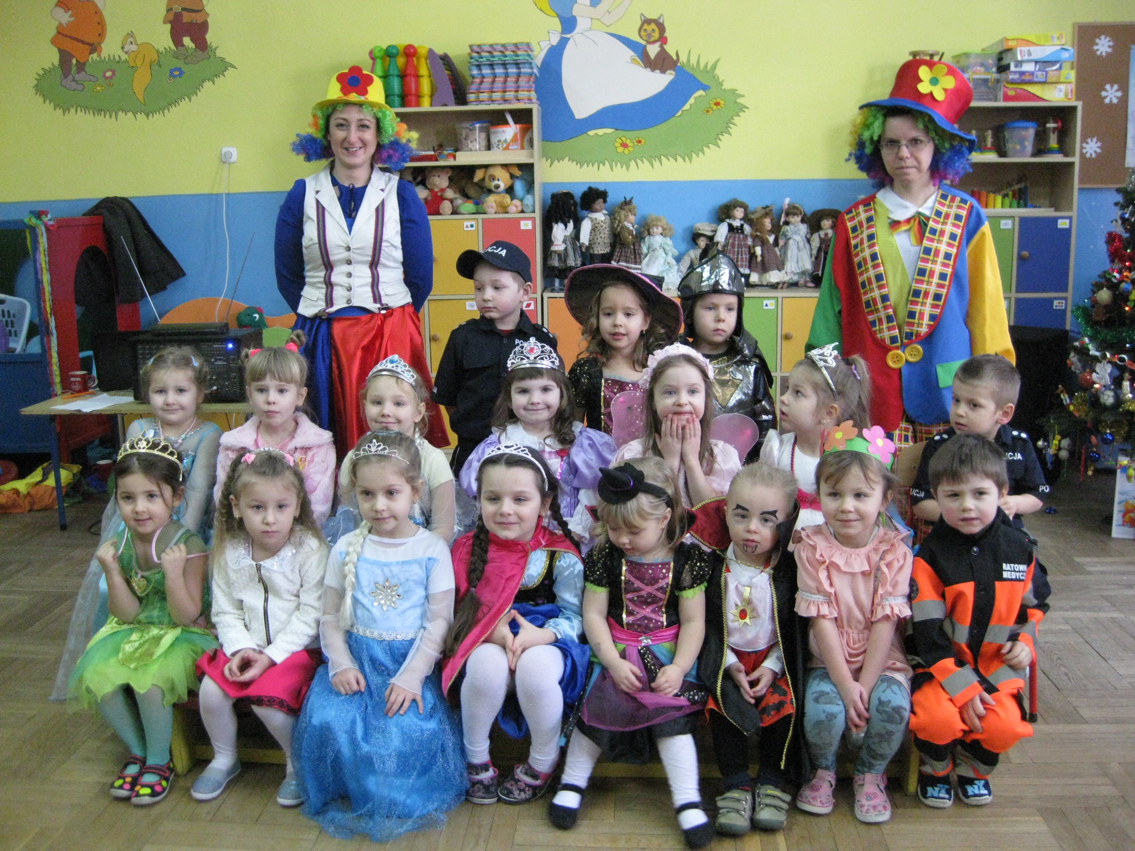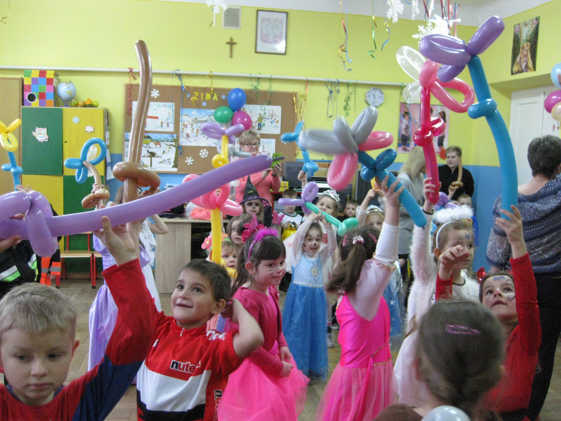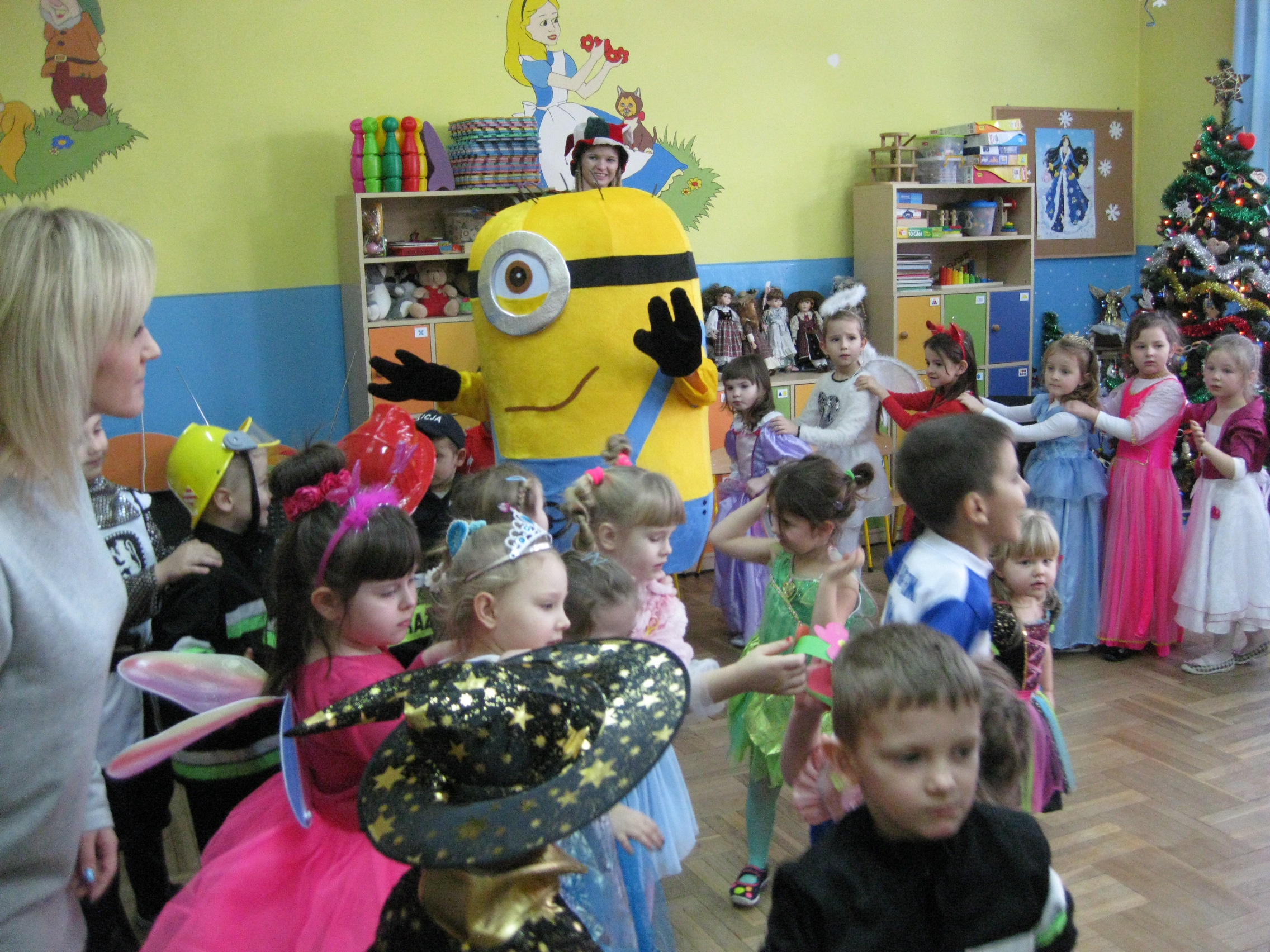 11 stycznia 2017r., jak co roku w okresie karnawału, dzieci z naszego przedszkola wzięły udział w balu kostiumowym. Nasi milusińscy w tym dniu zamienili się w bohaterów bajek, przedstawicieli różnych zawodów, zwierzęta. Dzieci z radością uczestniczyły w zabawach proponowanych przez MINIONKA, KLAUNA EDWARDA I KLAUNINKE LUCYNKĘ. Skoczna muzyka zachęcała do tańca. Były również zabawy z chustą animacyjną, liną, balonami, malowanie twarzy oraz wybór najciekawszej postaci bajkowej. Każde dziecko pozowało również do pamiątkowego zdjęcia.