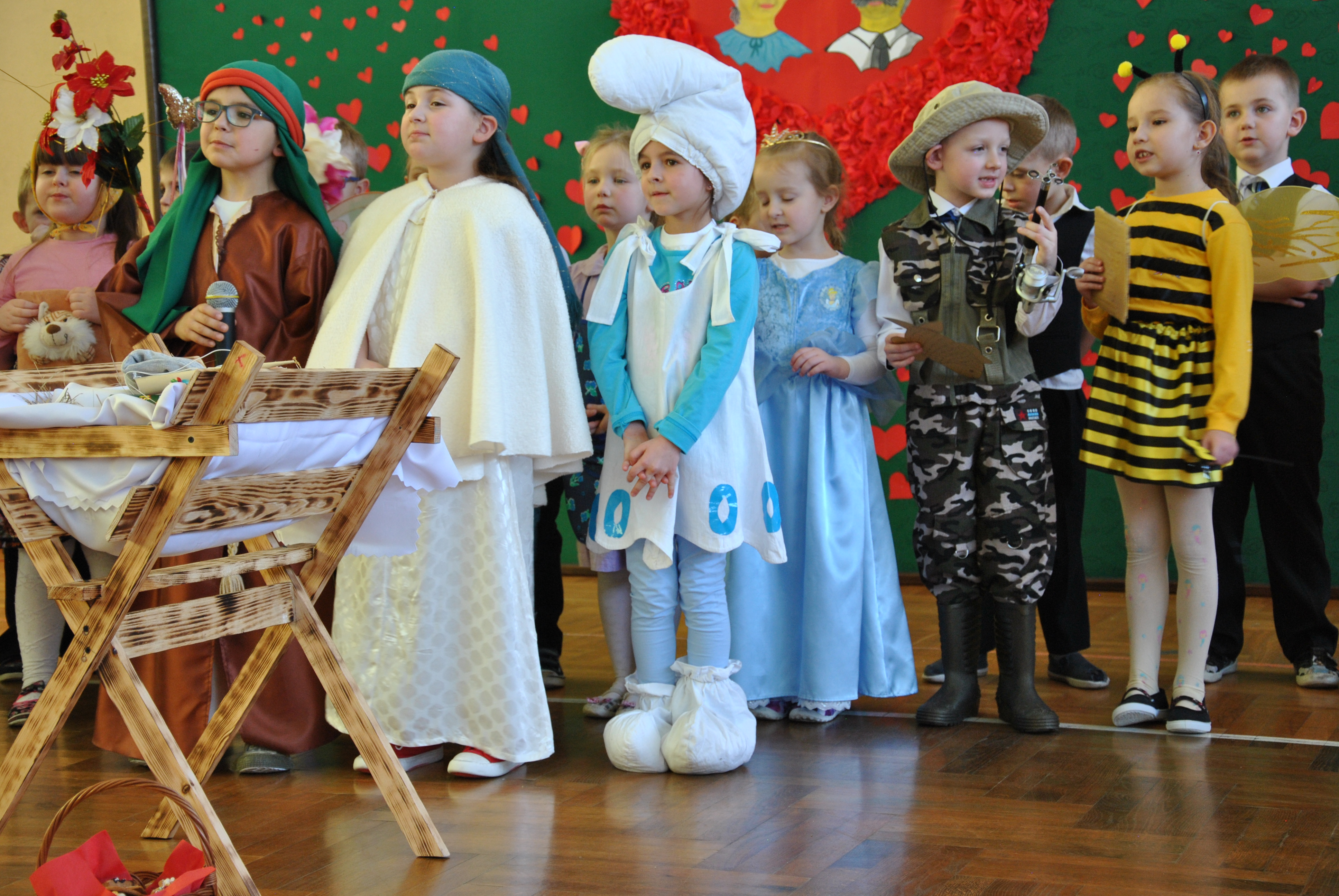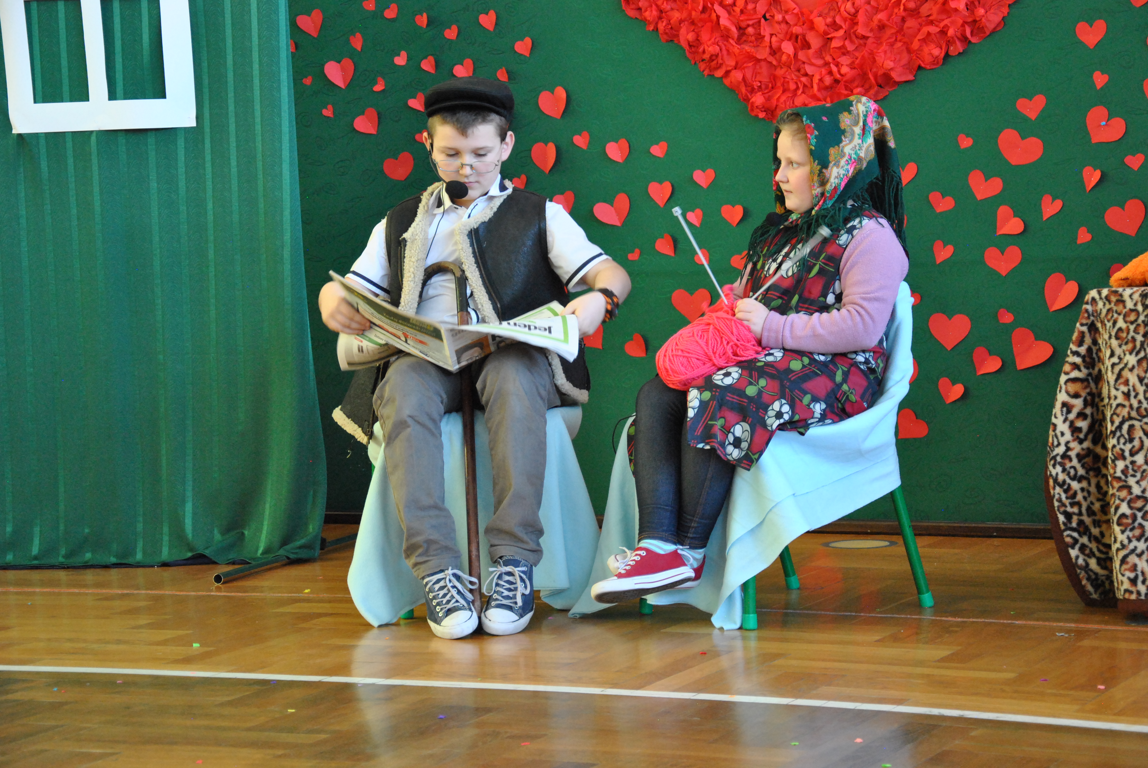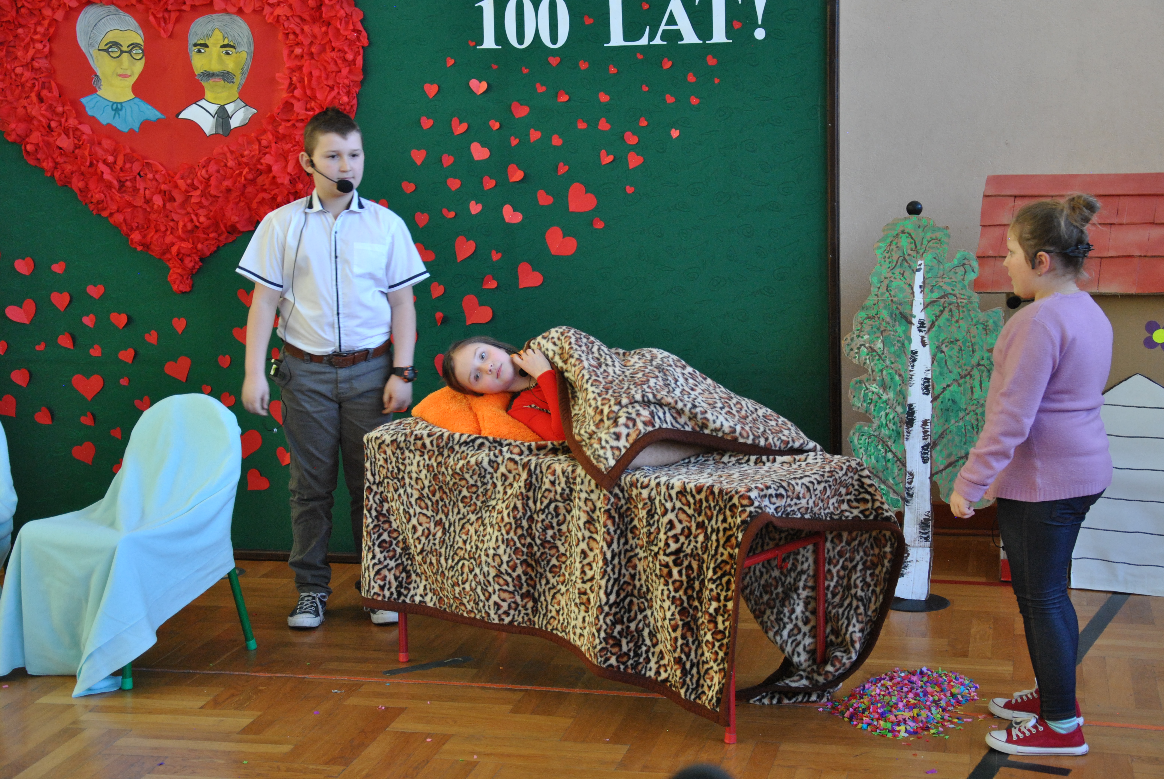 Następnie przedszkolaki oraz uczniowie klas I – III zaprezentowali ciekawy i bogaty program artystyczny. Występ rozpoczął się od przedstawienia „Babcie bywają różne” w wykonaniu młodszej grupy przedszkolaków, następnie grupa starszaków zaprezentowała „Bajkowe jasełka” oraz „12 życzeń dla Babci i Dziadka”. W kolejnej części uroczystości dzieci z klasy I przedstawiły inscenizację „Jak to z babcią i dziadkiem było”, następnie uczniowie klasy II zaprezentowali „Koncert życzeń”, zaś uczniowie klasy III wystąpili w przedstawieniu „Babcia i Dziadek – dawniej i dziś”.