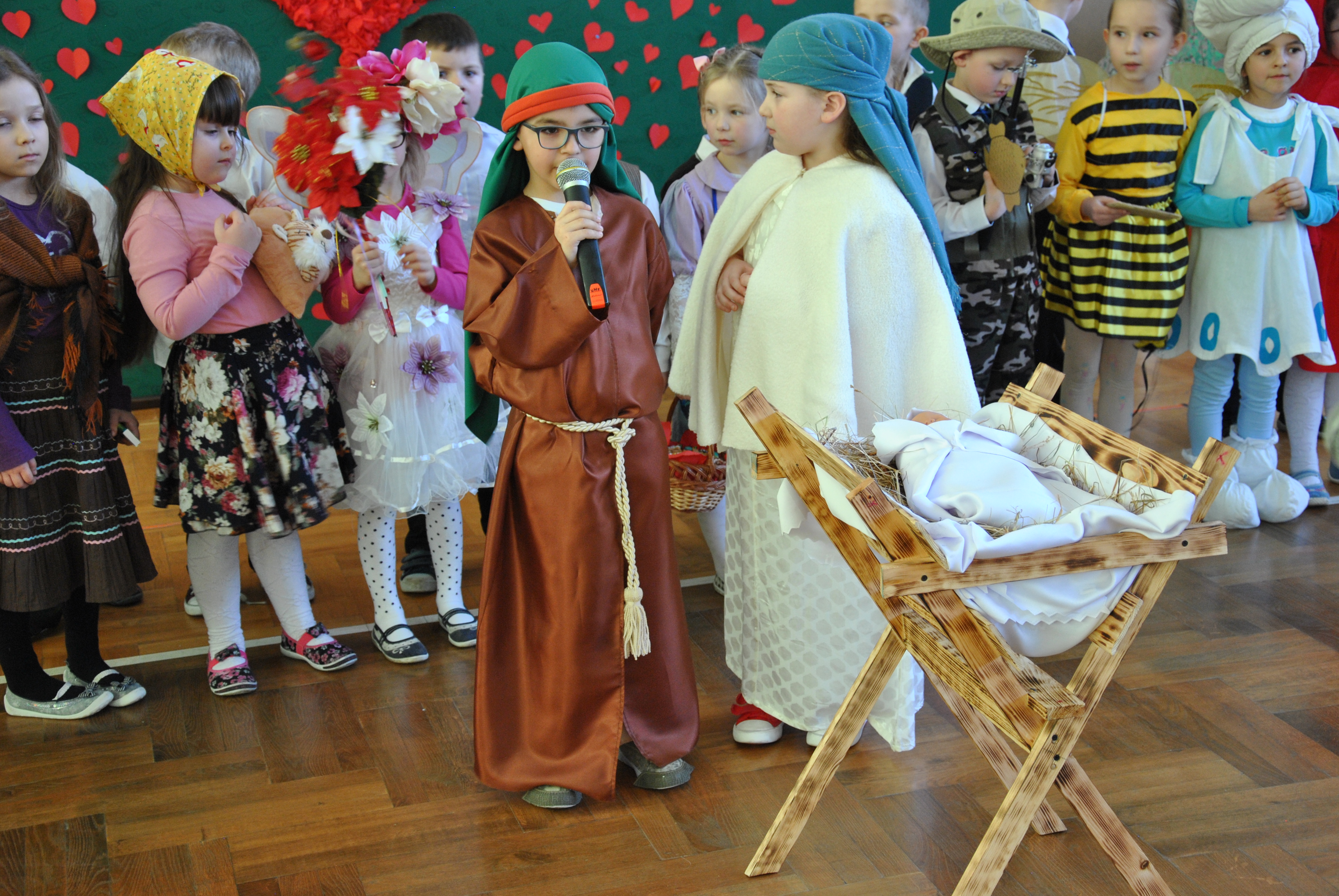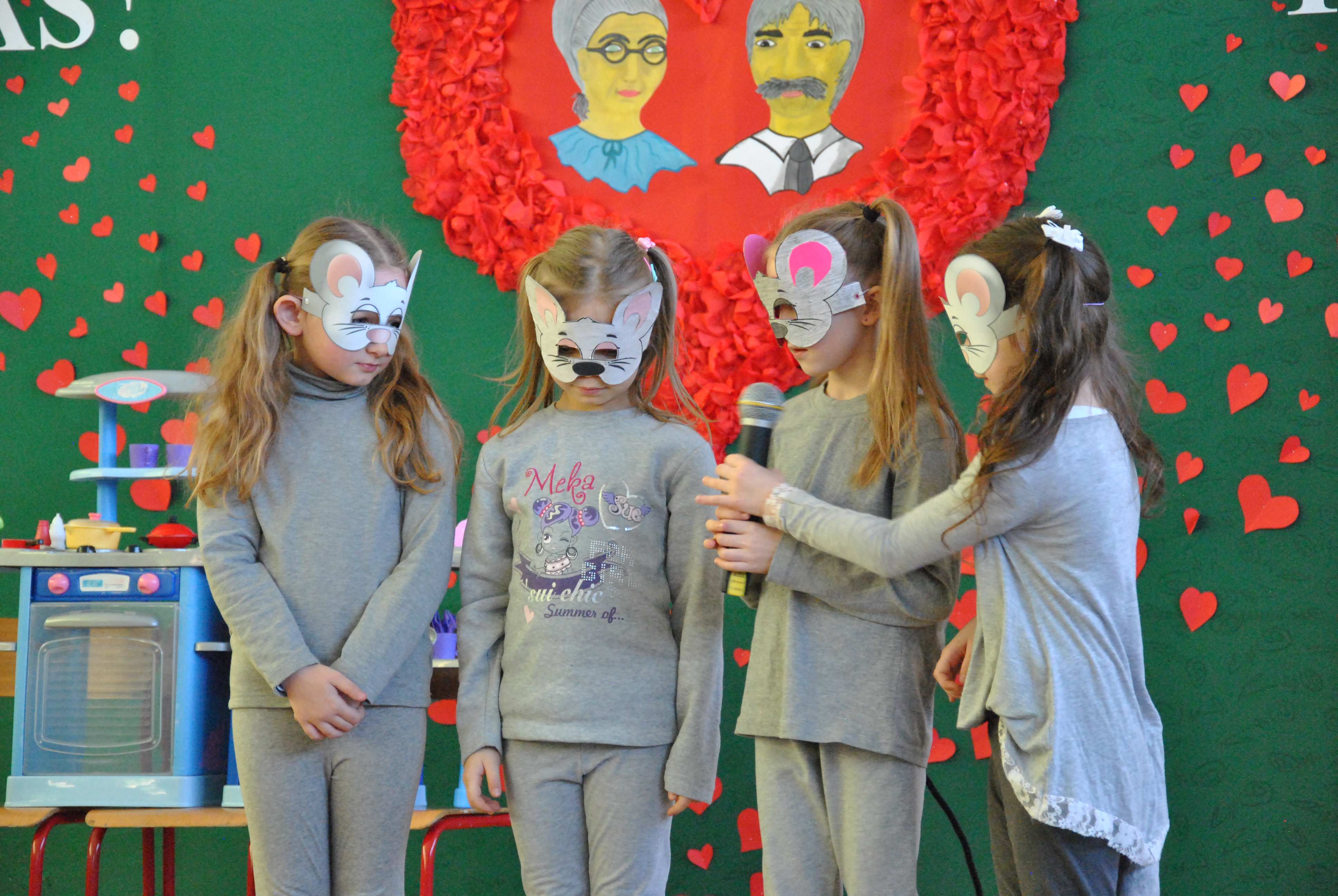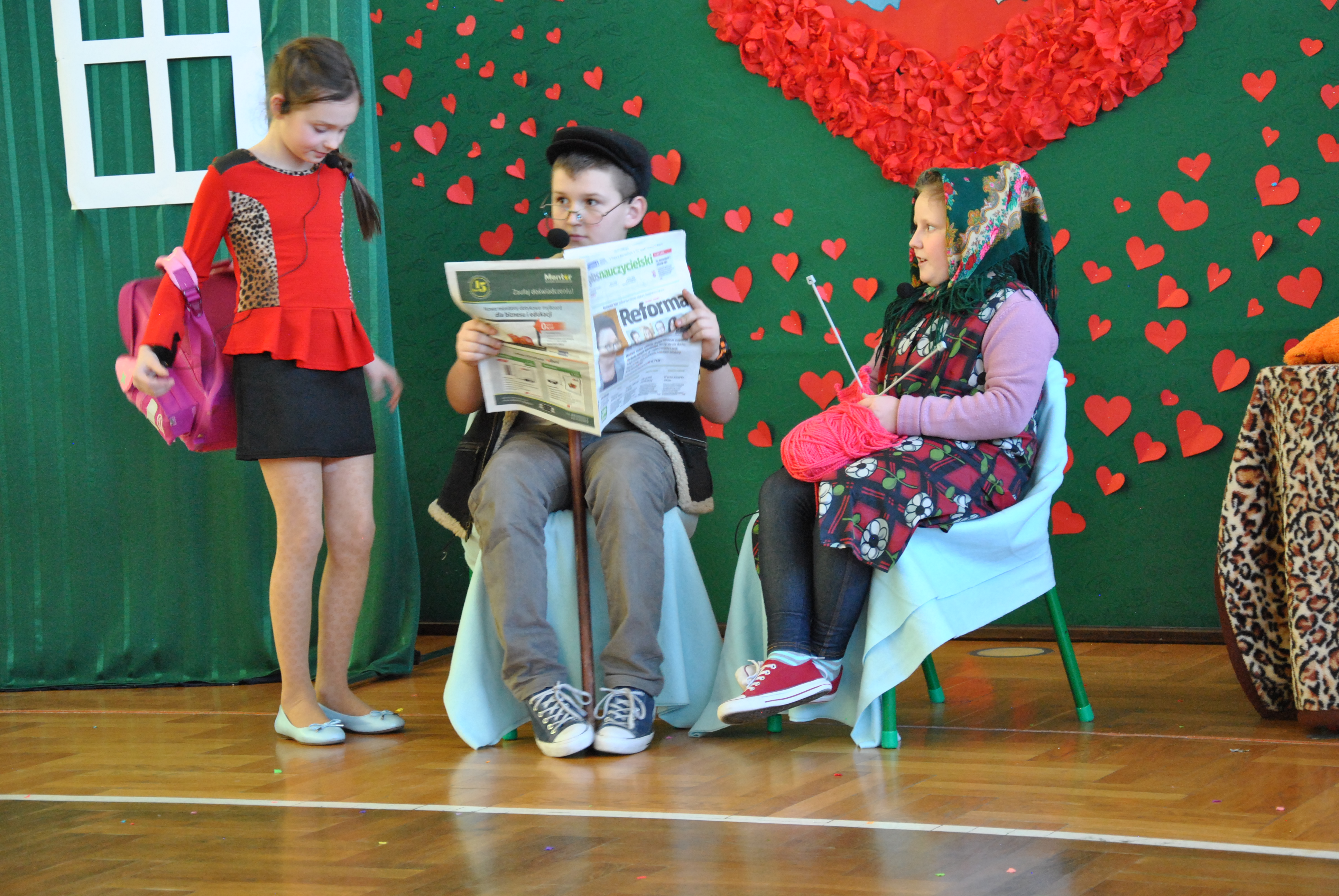 Następnie przedszkolaki oraz uczniowie klas I – III zaprezentowali ciekawy i bogaty program artystyczny. Występ rozpoczął się od przedstawienia „Babcie bywają różne” w wykonaniu młodszej grupy przedszkolaków, następnie grupa starszaków zaprezentowała „Bajkowe jasełka” oraz „12 życzeń dla Babci i Dziadka”. W kolejnej części uroczystości dzieci z klasy I przedstawiły inscenizację „Jak to z babcią i dziadkiem było”, następnie uczniowie klasy II zaprezentowali „Koncert życzeń”, zaś uczniowie klasy III wystąpili w przedstawieniu „Babcia i Dziadek – dawniej i dziś”.