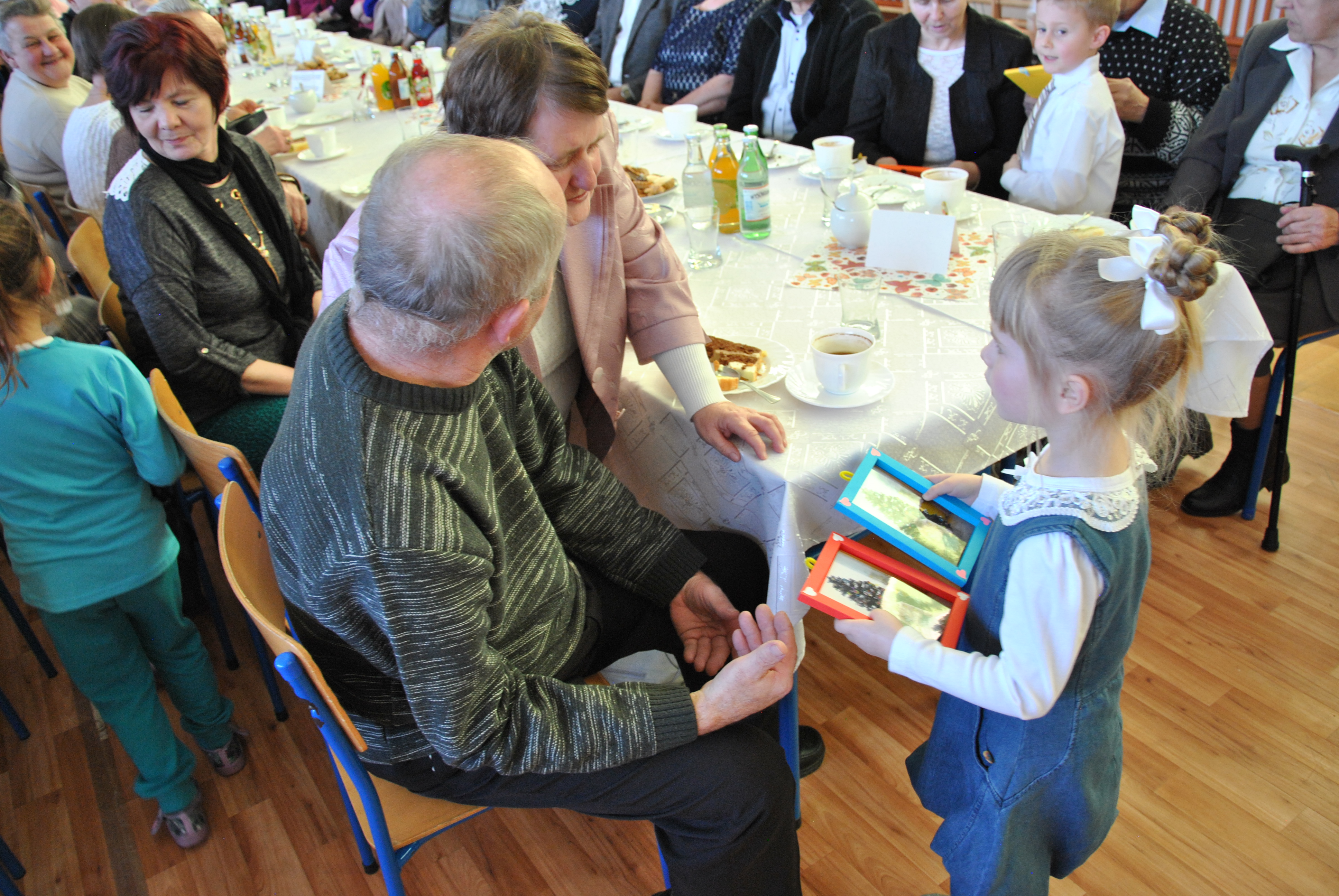 Po wspólnym odśpiewaniu „100 lat” dzieci wręczyły babciom i dziadkom prezenty. Wspaniała atmosfera oraz przygotowany, przez niezawodnych Rodziców, poczęstunek były okazją do wspólnych rozmów, wspomnień i miłego spędzenia czasu.