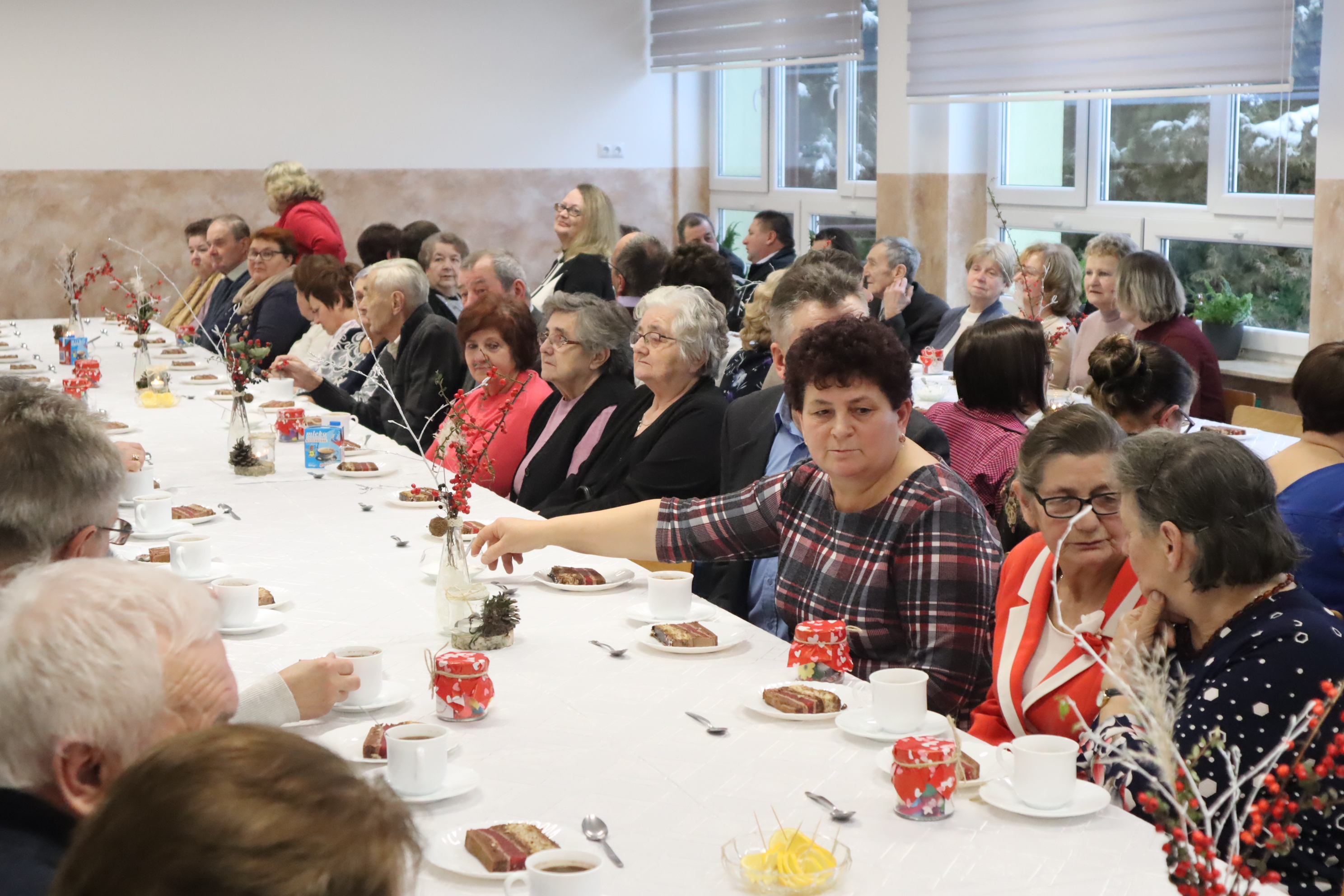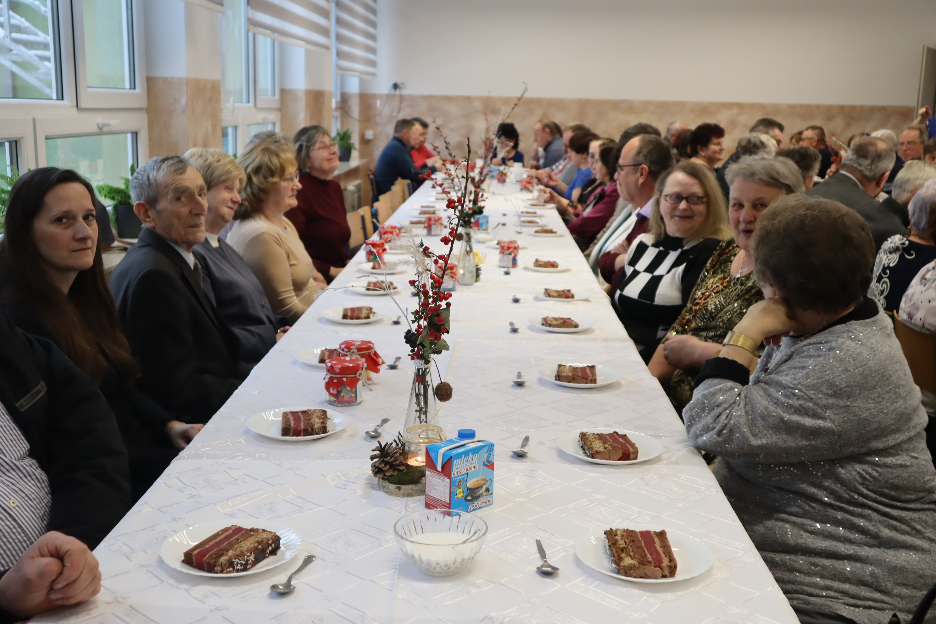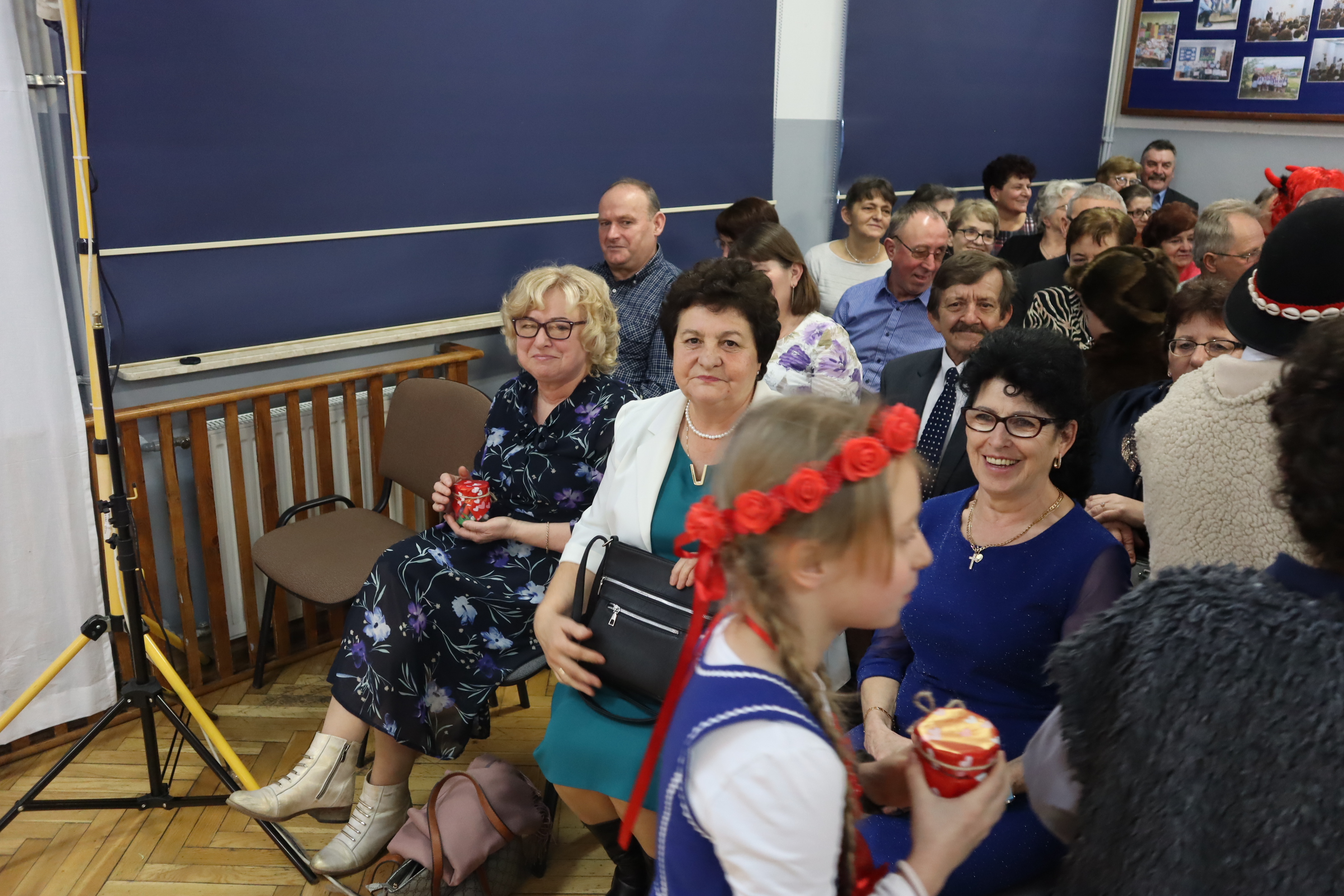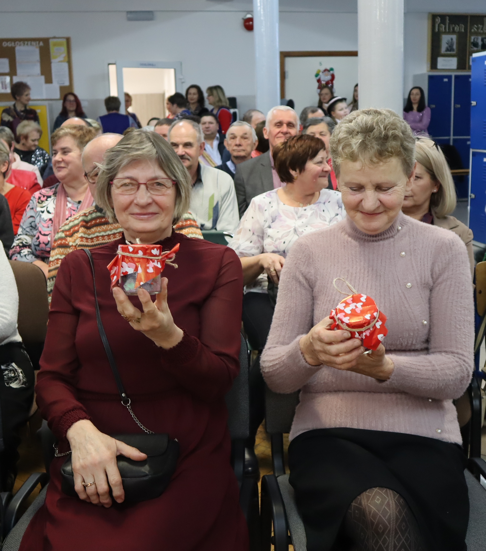 Były też szczególne podziękowania i życzenia dla babć i dziadków oraz kolędy w wykonaniu naszych najmłodszych uczniów, a także prezenty – ,,Konfitury uczuć ”, które dzieci wręczyły zaproszonym gościom. Na koniec występu, przy akompaniamencie akordeonu, wszyscy wspólnie odśpiewali również 100 lat dla przybyłych babć i dziadków.