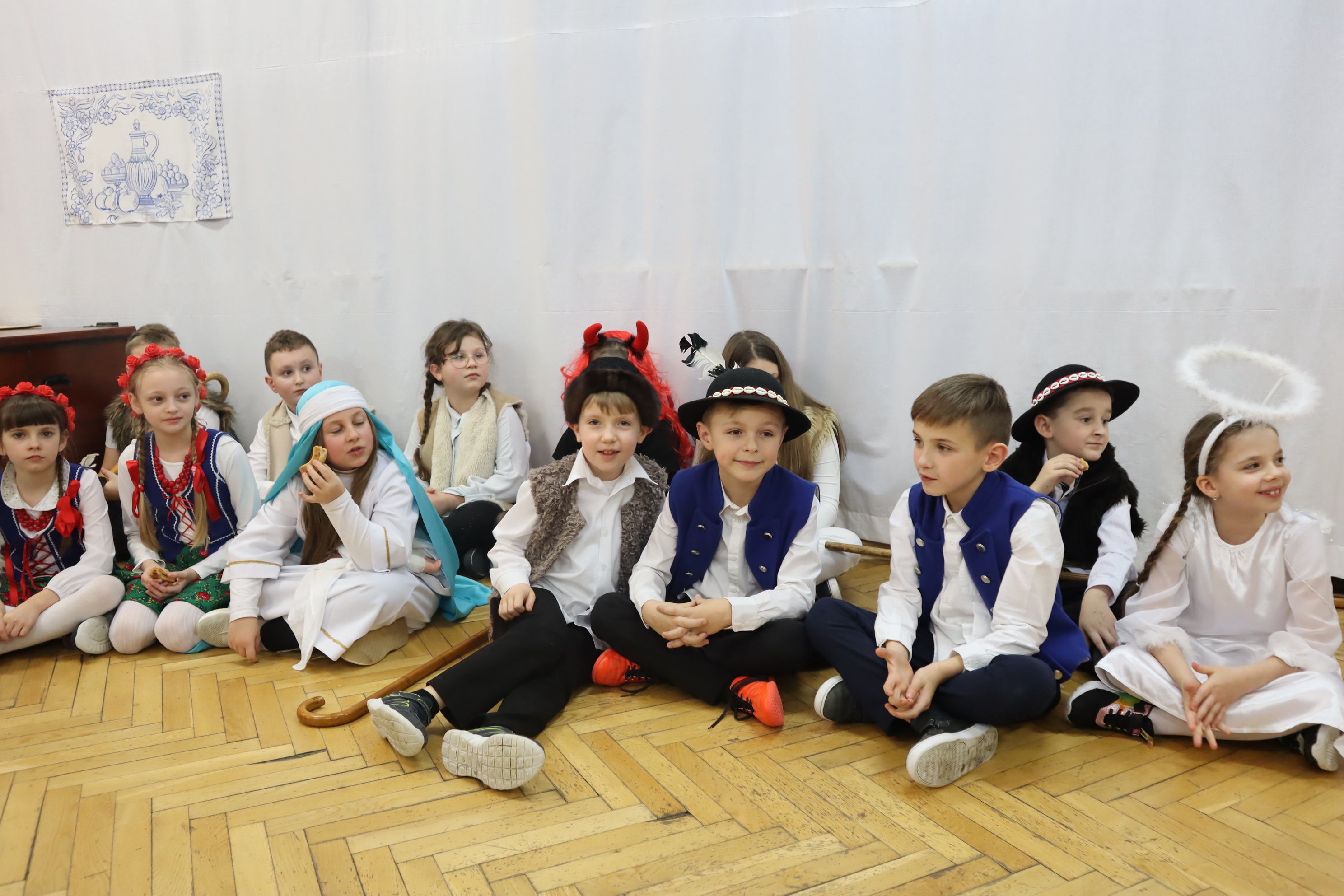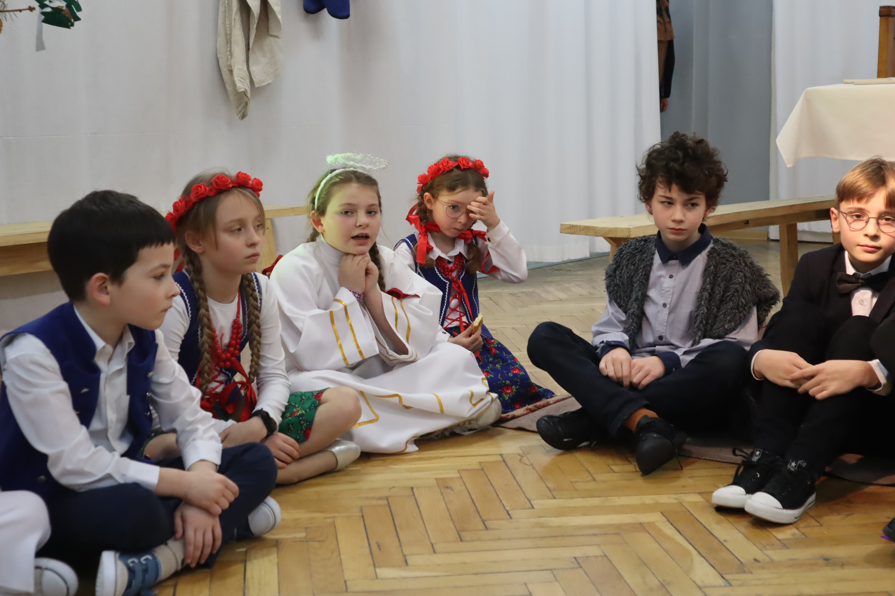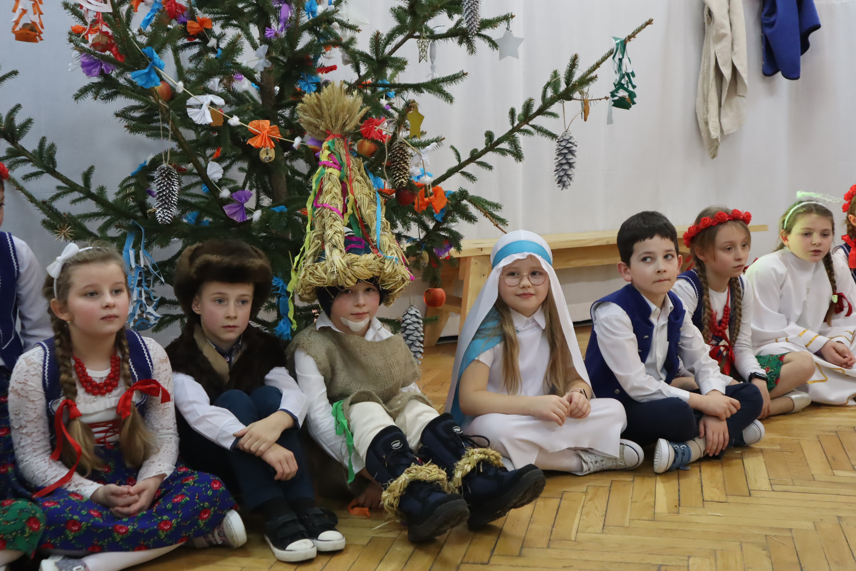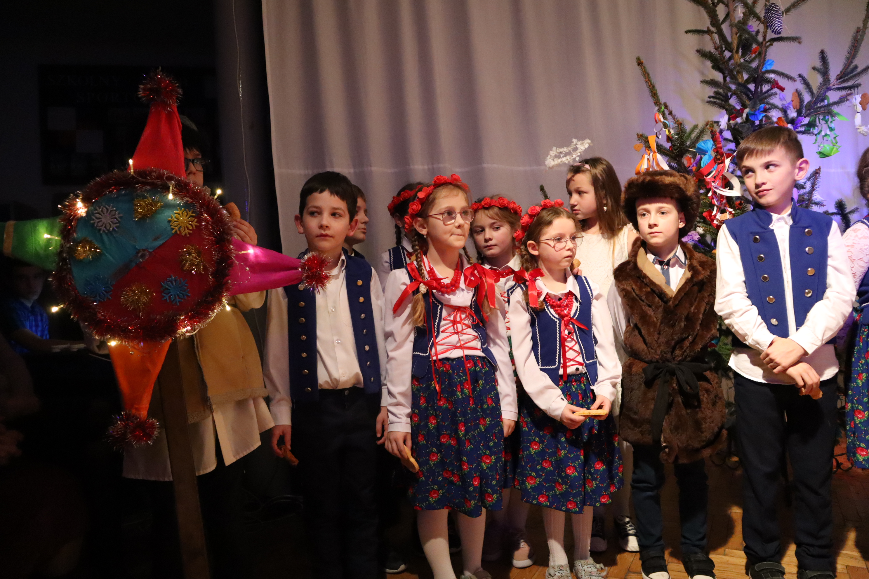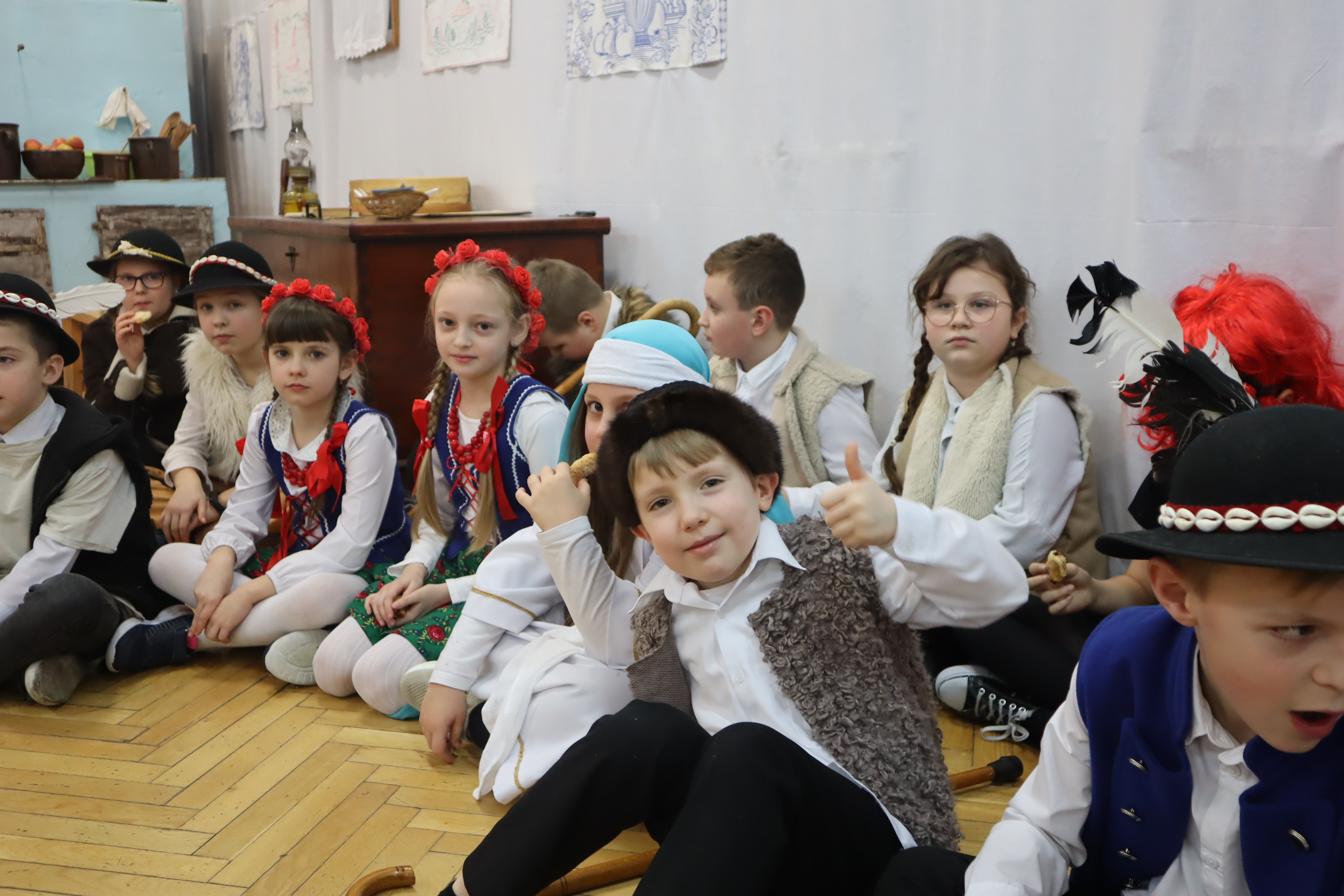 Następnie w przepięknej scenografii starej, strzeszyńskiej chaty oraz w wyjątkowej atmosferze dzieci wraz z Seniorami i uczniami klas starszych przedstawili ,, Wigilię naszych dziadów”, które to przedstawienie niejednej babci i niejednemu dziadkowi przypomniało lata dzieciństwa oraz młodości, a także stare tradycje naszego regionu, dotyczące przygotowań i przeżywania okresu bożonarodzeniowego.