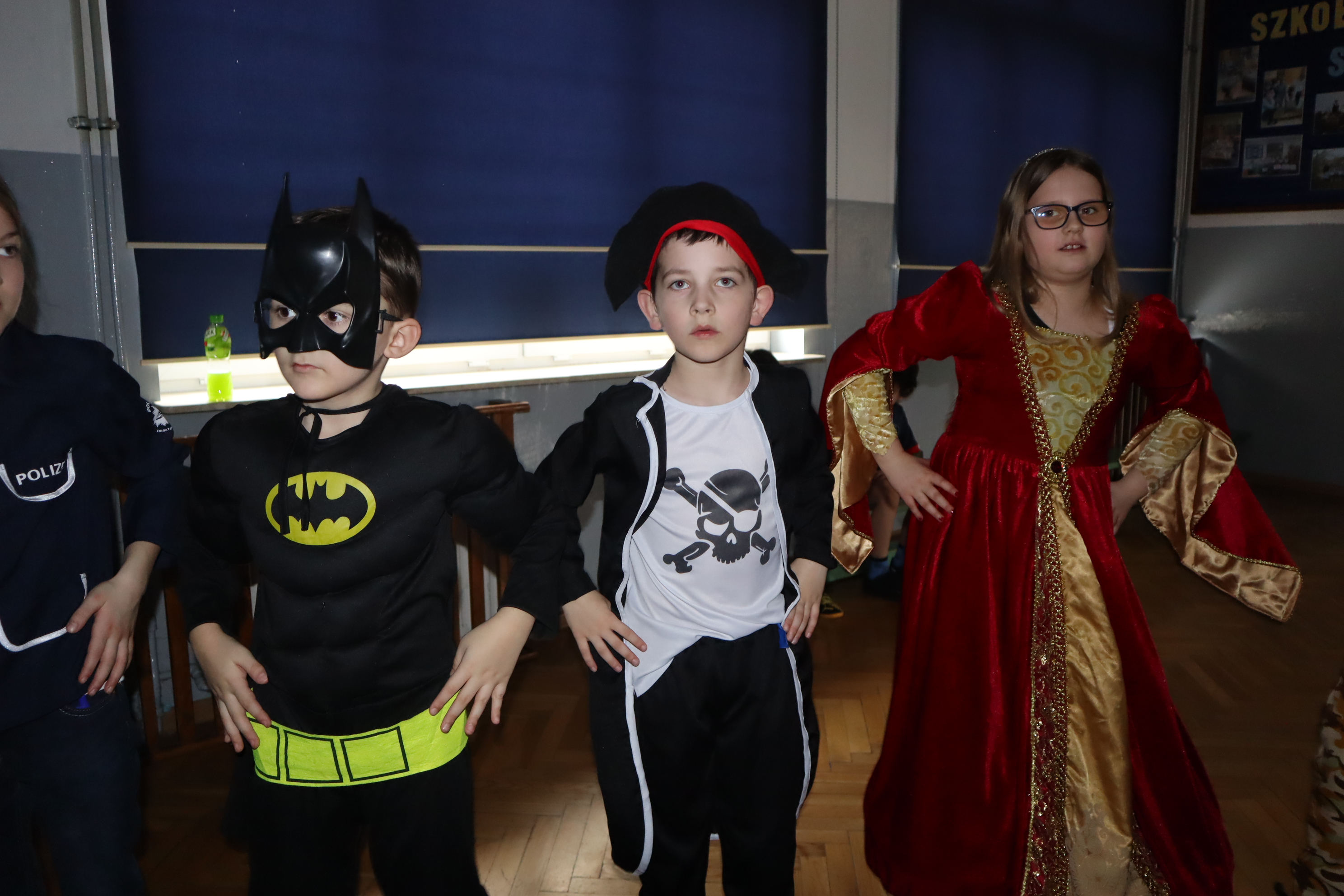 Po ciężkiej pracy w I semestrze nauki nasi uczniowie niewątpliwie zasłużyli na odpoczynek oraz dobrą rozrywkę w postaci zabawy karnawałowej, która odbyła się w naszej szkole 26 stycznia 2023 roku. Tego dnia uczniom towarzyszyło wiele emocji i wrażeń. Wszyscy bawili się znakomicie, bo humor dopisywał zarówno dzieciom jak i opiekunom. Były korowody, kółeczka i tańce w parach. Tegoroczna zabawa karnawałowa w naszej szkole należała do udanych. Wszyscy byli zmęczeni tańcami, ale zadowoleni. W radosnych nastrojach, wróciliśmy do swych domów.