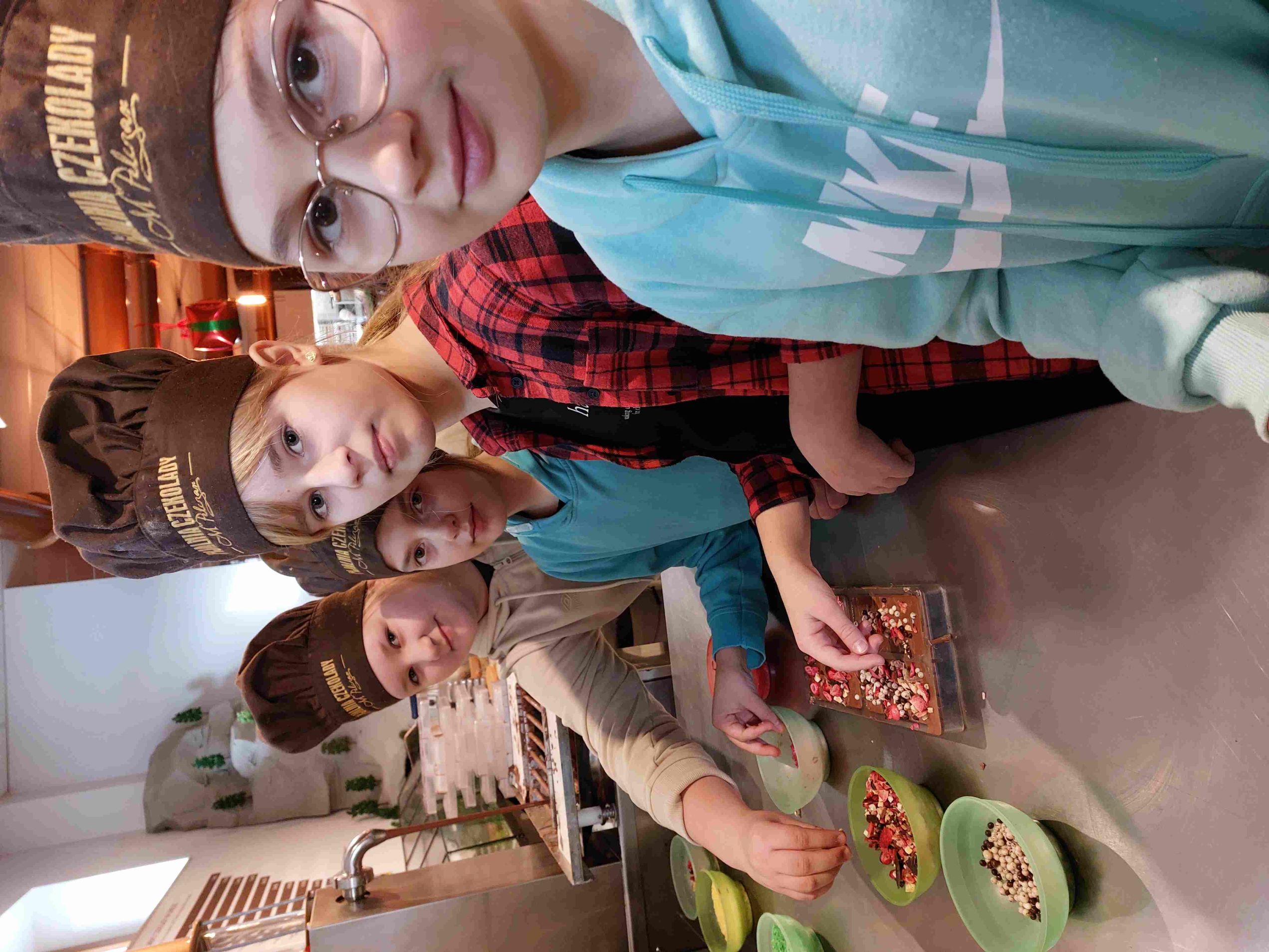 Dnia 30.11.2023 roku uczniowie kl. V i VI odwiedzili Fabrykę Czekolady w Korczynie koło Krosna i dom Marii Konopnickiej w Żarnowcu. Mieliśmy okazję poznać tajniki wyrobu prawdziwej czekolady, spróbować kilku jej gatunków a także stworzyć własne słodkości. Duże wrażenie zrobił na nas dom Marii Konopnickiej gdzie przenieśliśmy się do czasów w których żyła nasza wybitna pisarka.