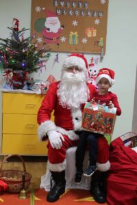 Po wykonaniu wspólnych zdjęć przedszkolaki podziękowały i pożegnały Mikołaja, który udał się do dzieci z klas I – III. Spotkanie z Mikołajem minęło w bardzo miłej atmosferze. Szkoda tylko, że ten wyjątkowy gość odwiedza wszystkich tylko raz w roku.