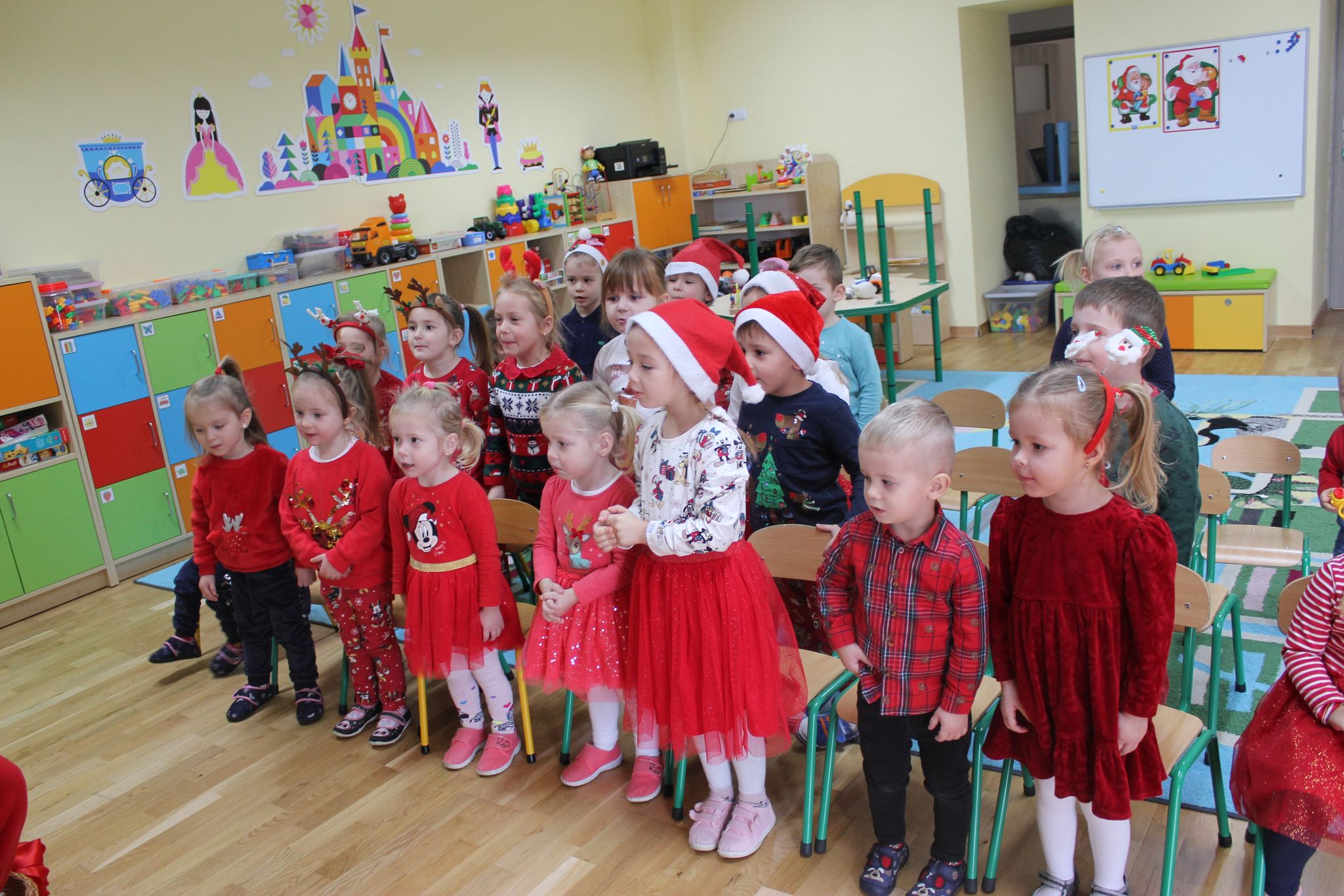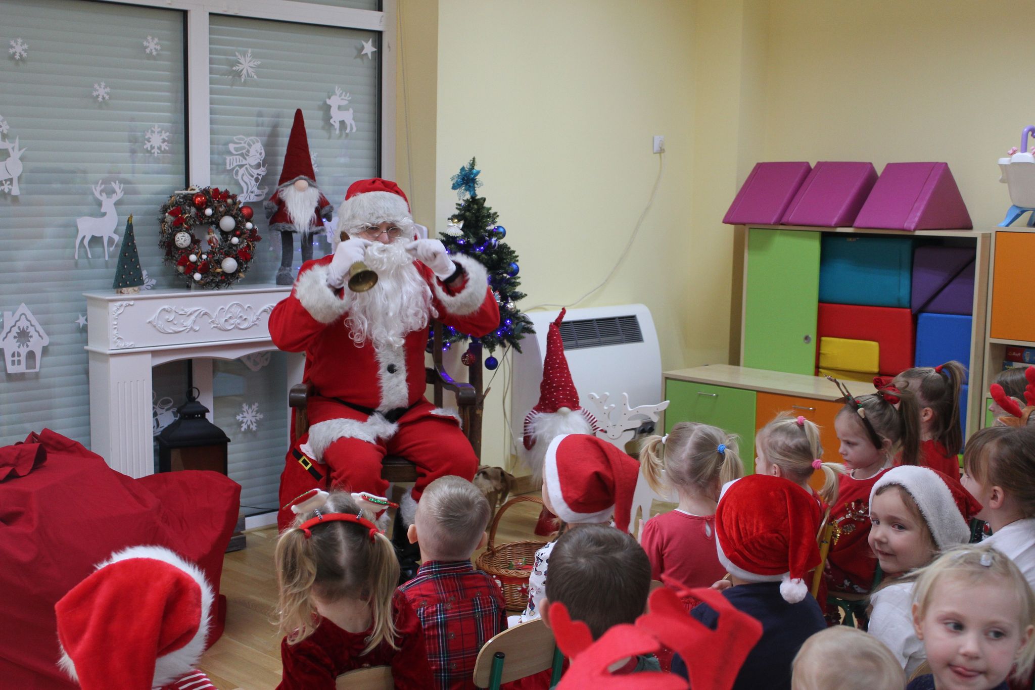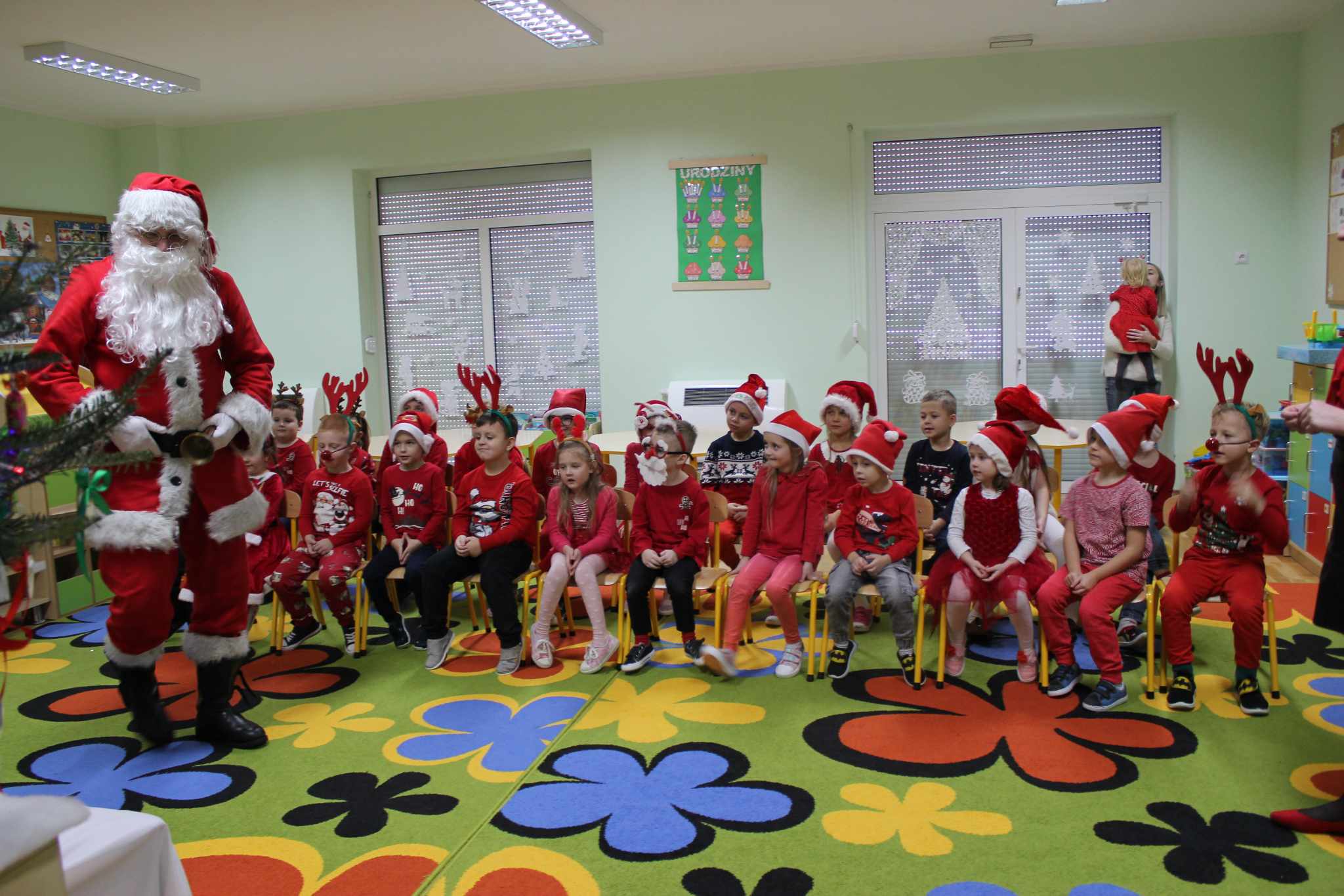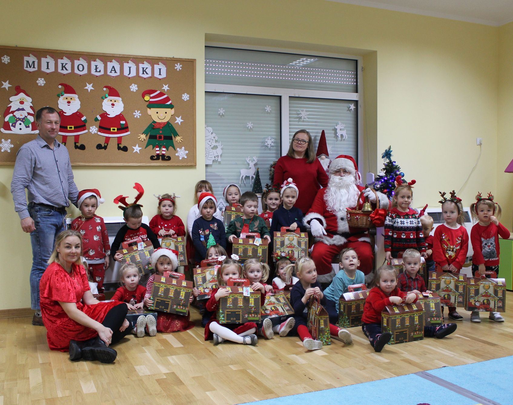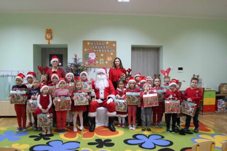 i wierszy, którymi powitały gości. Na koniec po zapewnieniach, że będą się starały zachowywać grzecznie w domu i w przedszkolu, Mikołaj obdarował je prezentami.