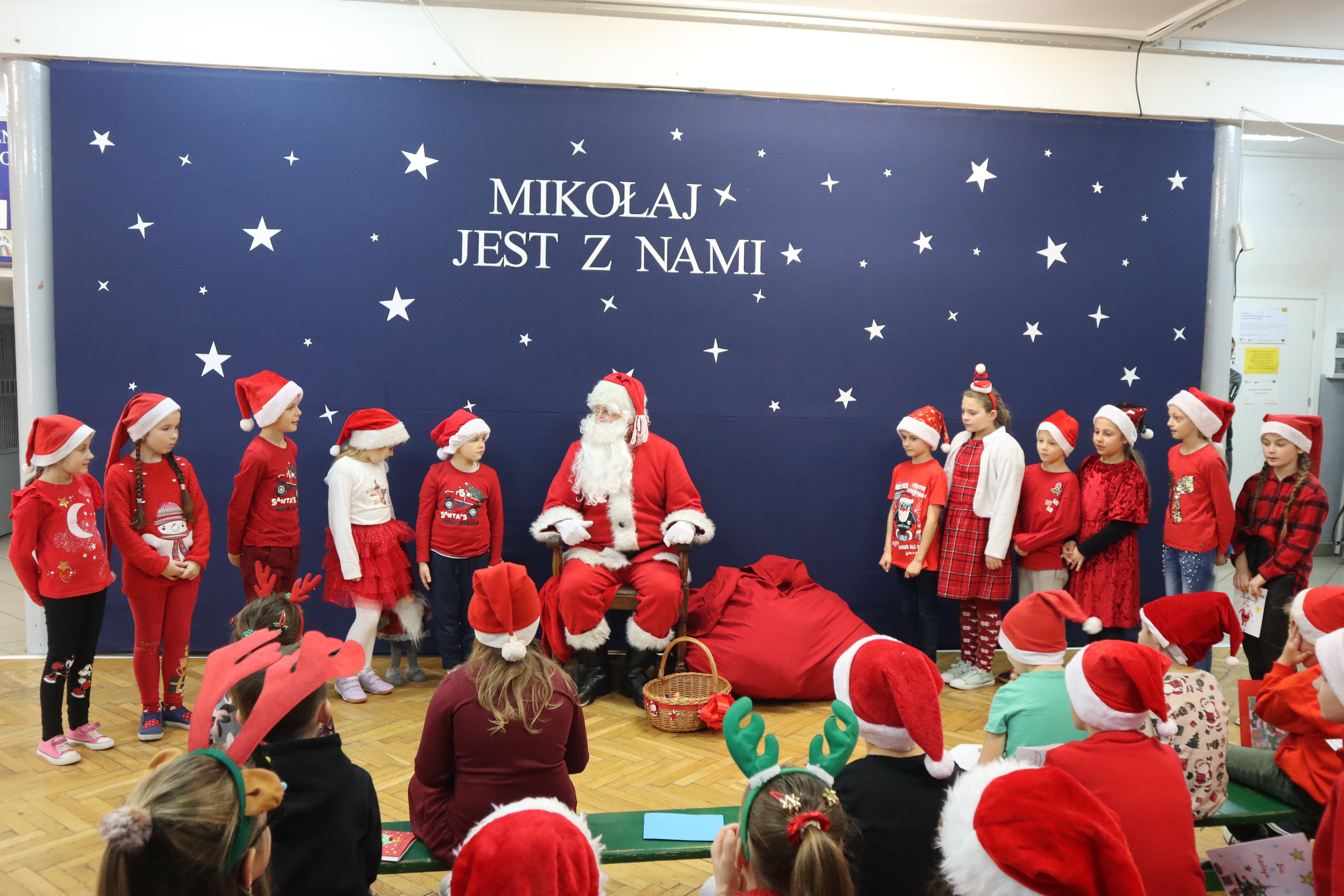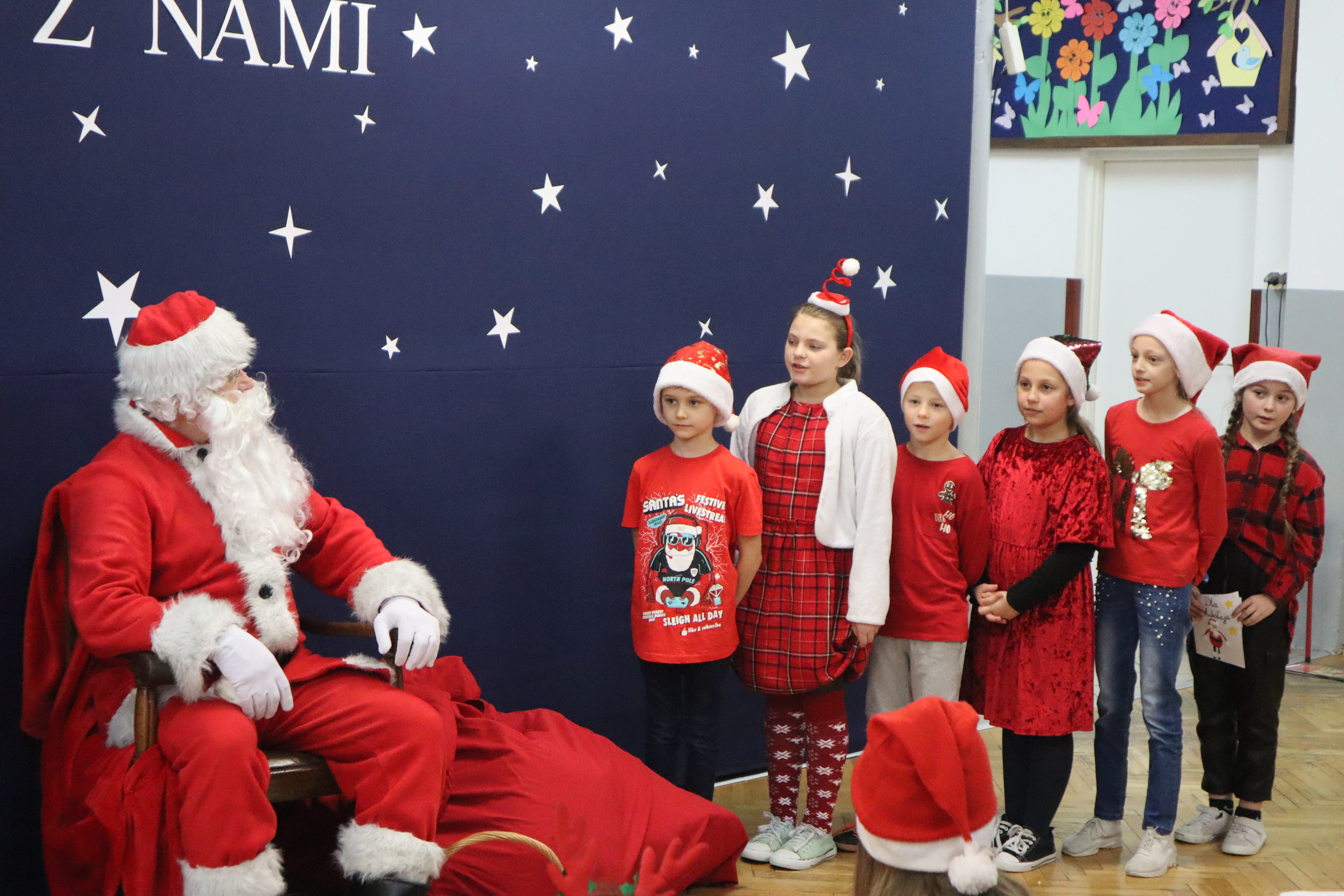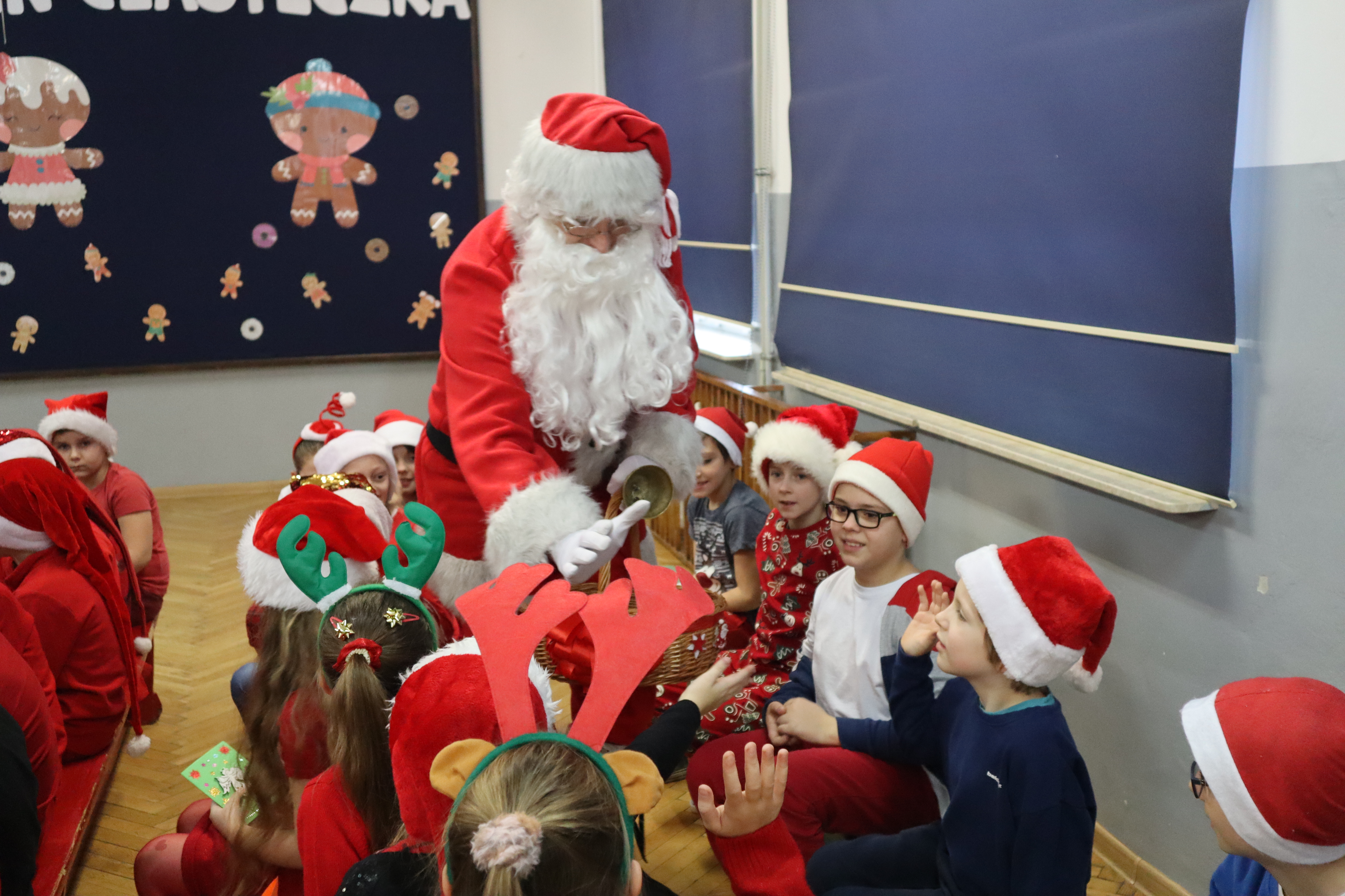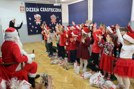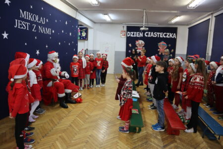 6 grudnia 2023 roku do naszej szkoły zawitał Święty Mikołaj. Uczniowie klas I-III przywitali go w wyjątkowy sposób- ubrani w czerwone Mikołajowe czapki i świąteczne stroje, śpiewali piosenki i recytowali wiersze. Podczas wręczania prezentów Święty Mikołaj nie tylko obdarowywał dzieci, ale także rozmawiał z nimi i pyta , czy były grzeczne. To spotkanie sprawiło, że dzień stał się wyjątkowy i pełen uśmiechów na twarzach uczniów. Na pewno to wydarzenie na długo pozostanie w ich pamięci.