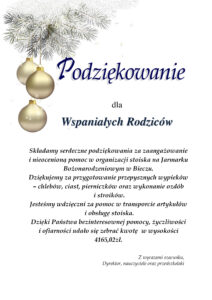 Składamy serdeczne podziękowania Rodzicom za zaangażowanie i nieocenioną pomoc w organizacji stoiska na Jarmarku Bożonarodzeniowym w Bieczu.
