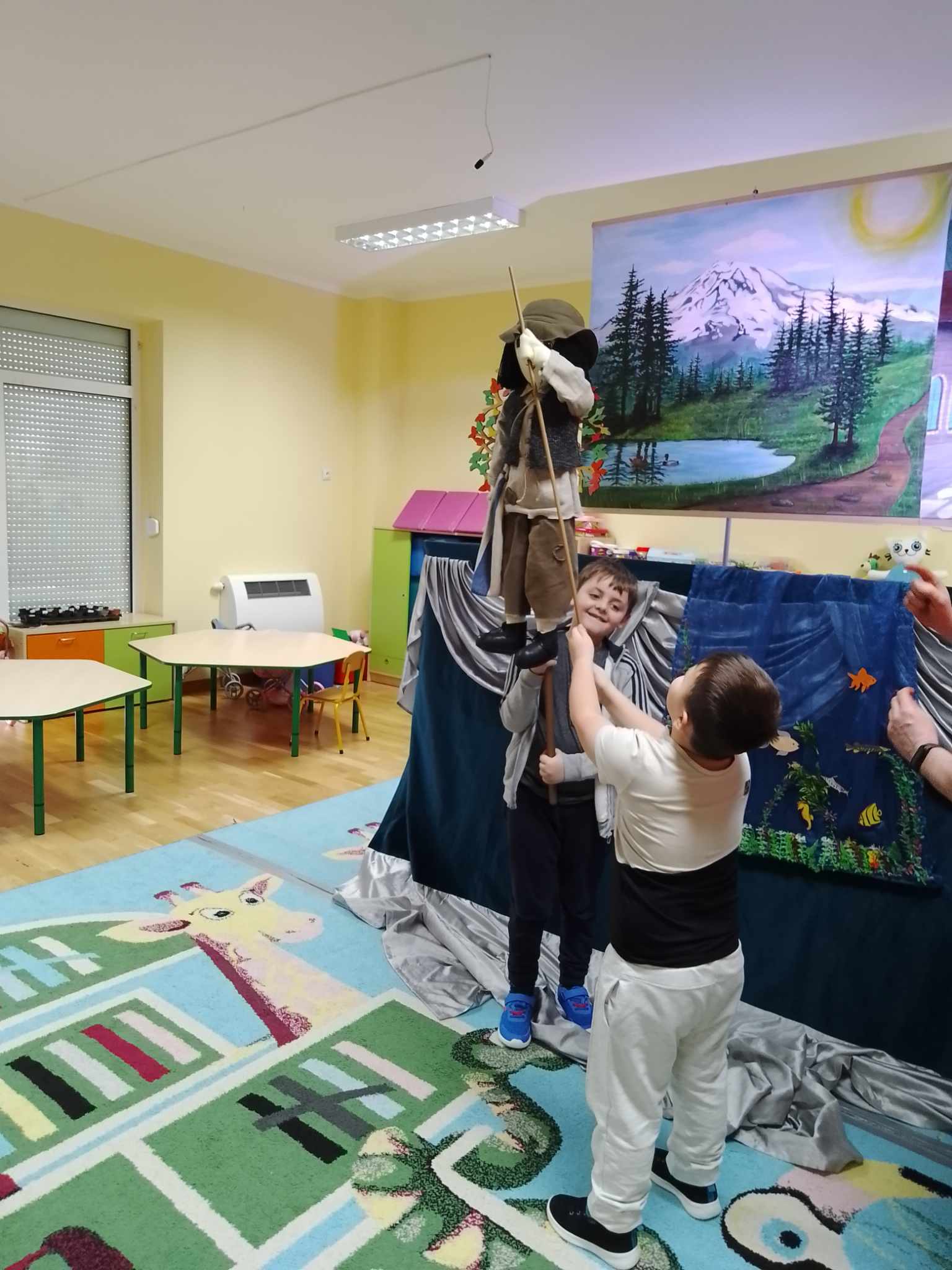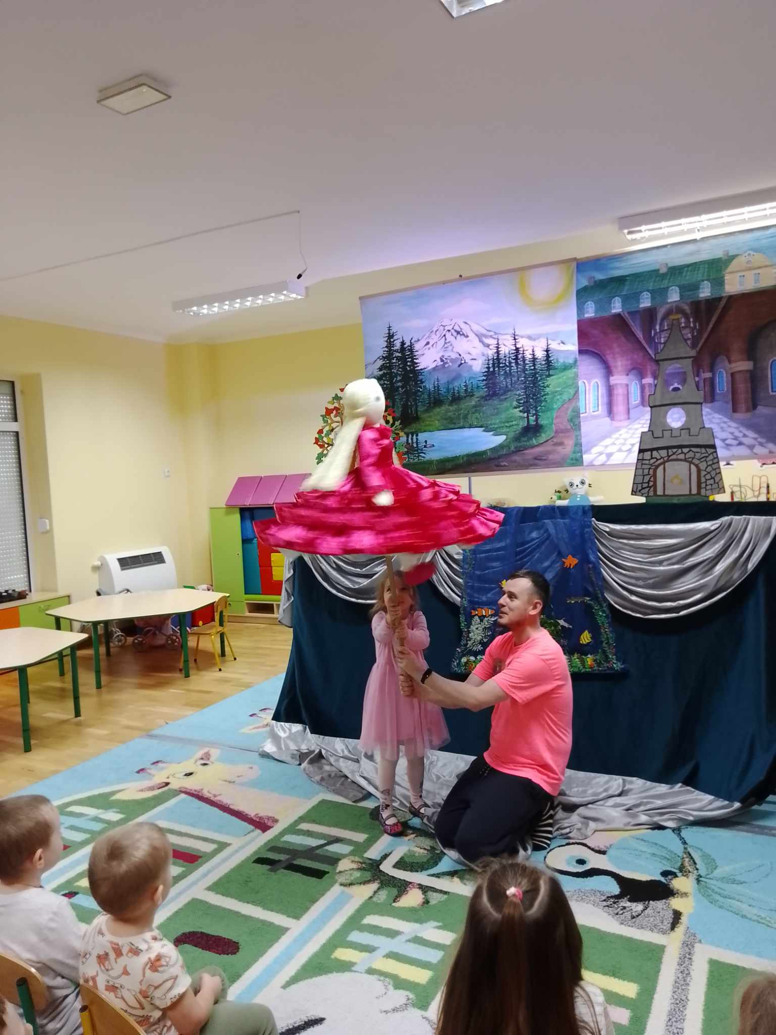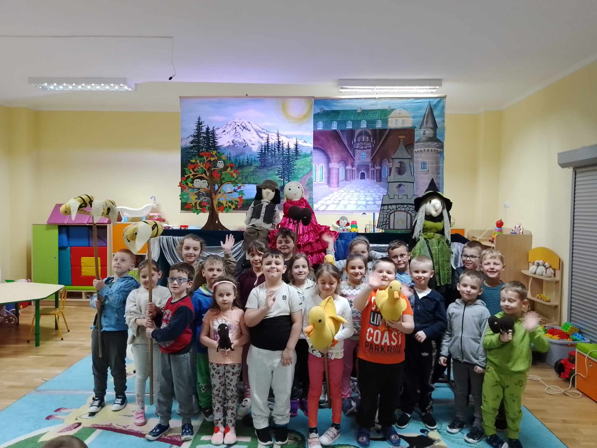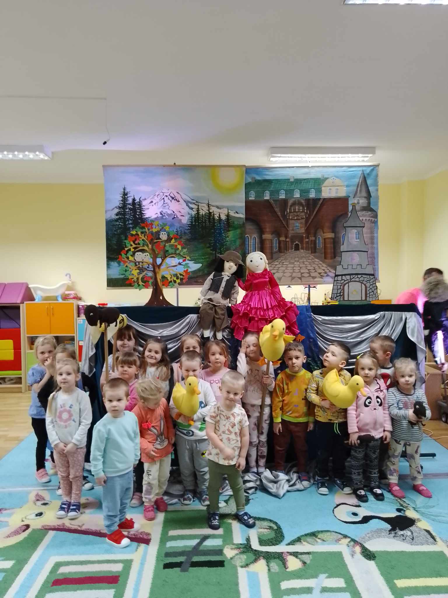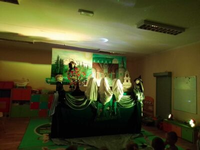 Po zakończeniu spektaklu obie grupy otrzymały kolorowanki związane z przygodami dzielnego Szewczyka oraz quiz wiedzy na temat bajki. Dzieci miały także możliwość wcielenia się w postać Dratewki i wykonały na scenie trzy zadania z użyciem lalek teatralnych.