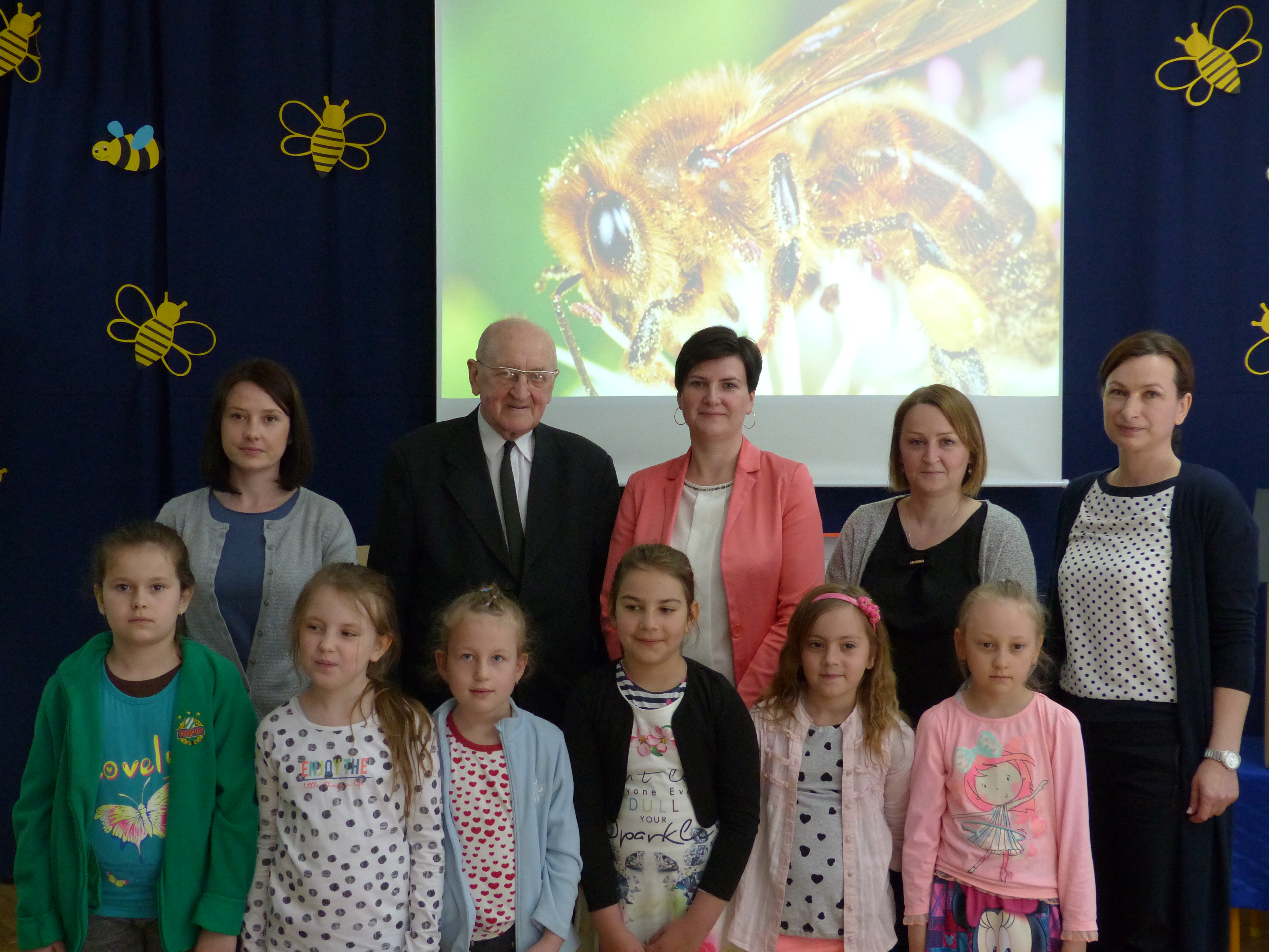 Podsumowaniem zajęć było pamiątkowe zdjęcie i przesłanie, że pszczoły spełniają w naszym środowisku bardzo ważną rolę, a my powinniśmy o to środowisko nieustannie dbać.